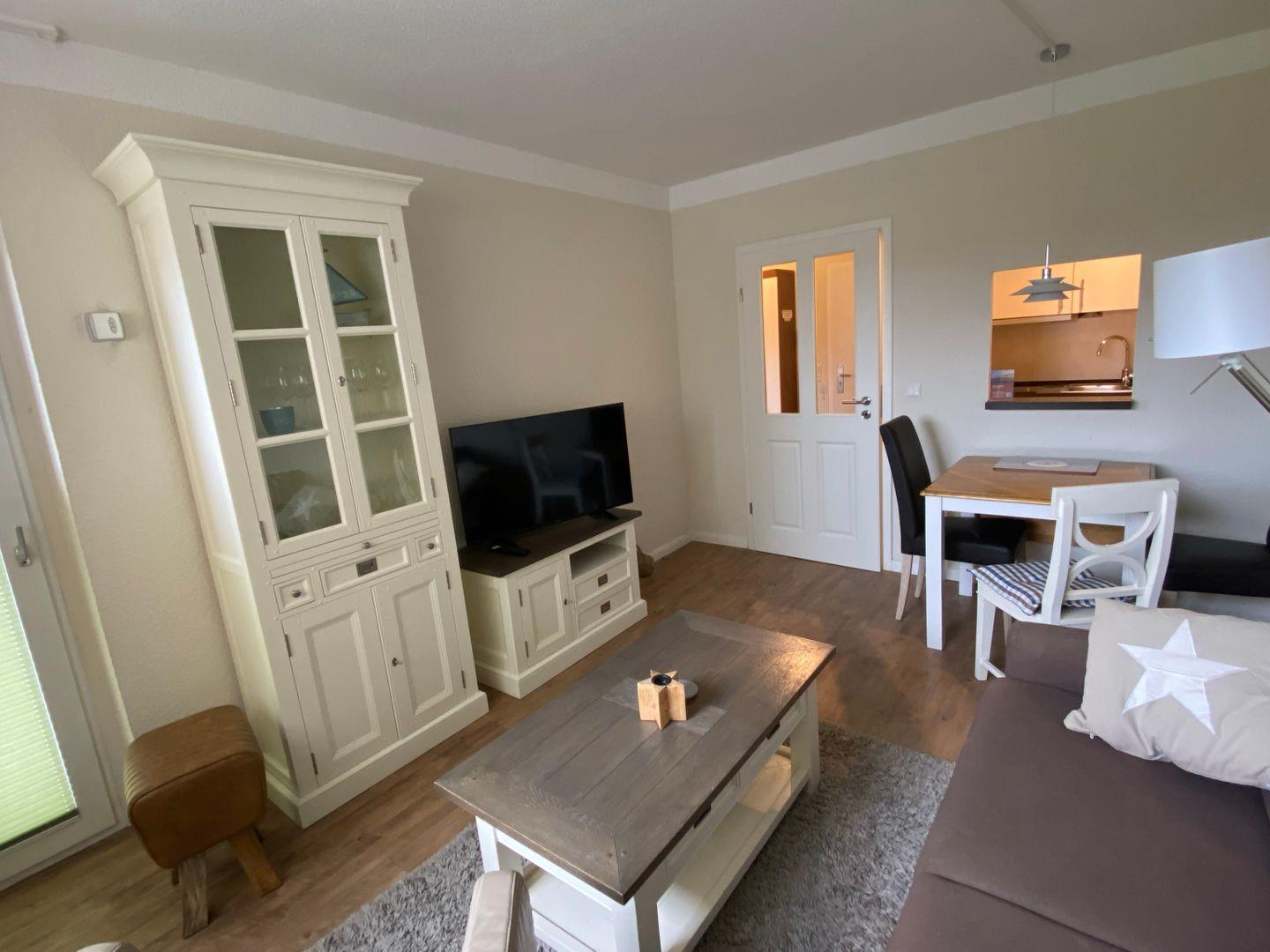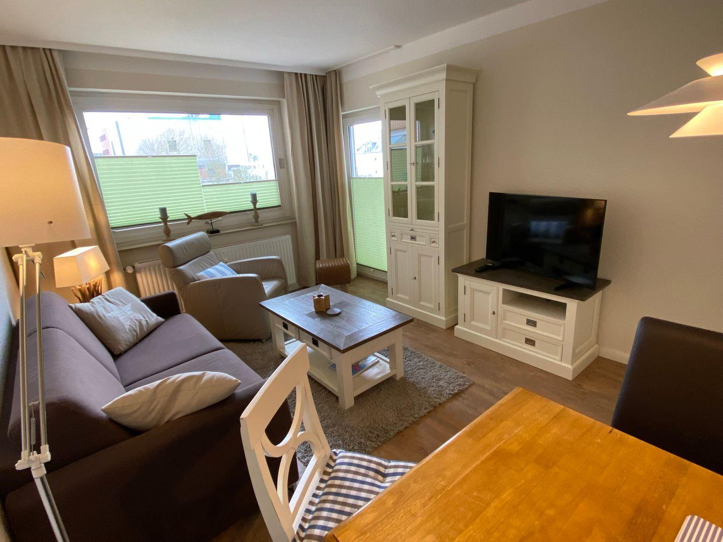 Genießen Sie Ihre Mahlzeiten am Esstisch oder entspannen Sie sich auf dem gemütlichen Sofa und schauen Sie fern. Zwei Fernseher sorgen dafür, dass Unterhaltung für jeden Geschmack zur Verfügung steht. Der Balkon, der zur Wohnung gehört, lädt dazu ein, die frische Seeluft und die Umgebung zu genießen.