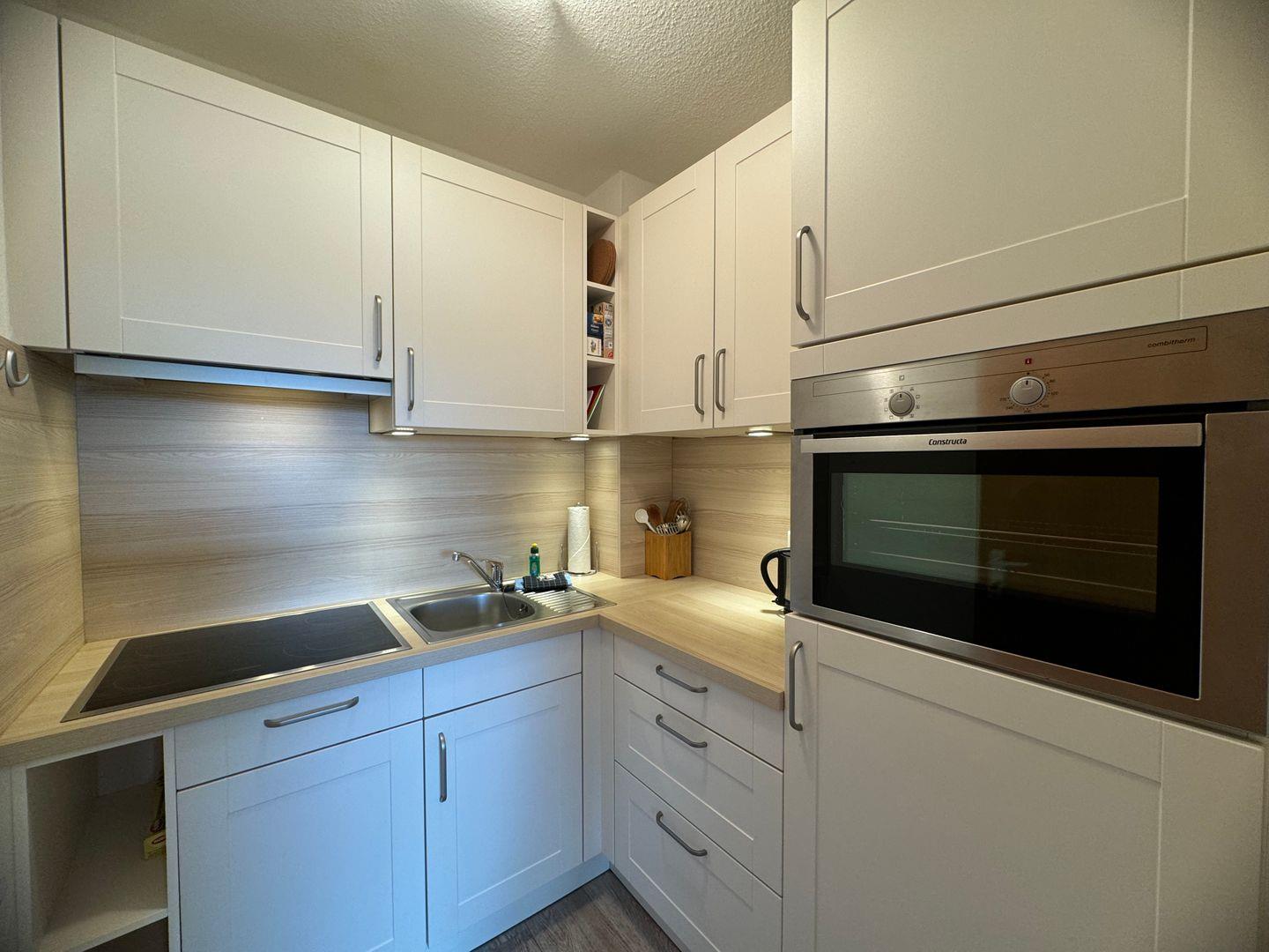 In der Küche können Sie Ihre Lieblingsgerichte zubereiten. Die moderne Ausstattung der Küche umfasst alles, was Sie dafür benötigen, darunter einen Kühlschrank, Backofen, Herd, Spülmaschine und eine Kaffeemaschine. Genießen Sie Ihre Mahlzeiten am gemütlichen Esstisch oder auf dem einladenden Balkon mit Blick auf die Umgebung.