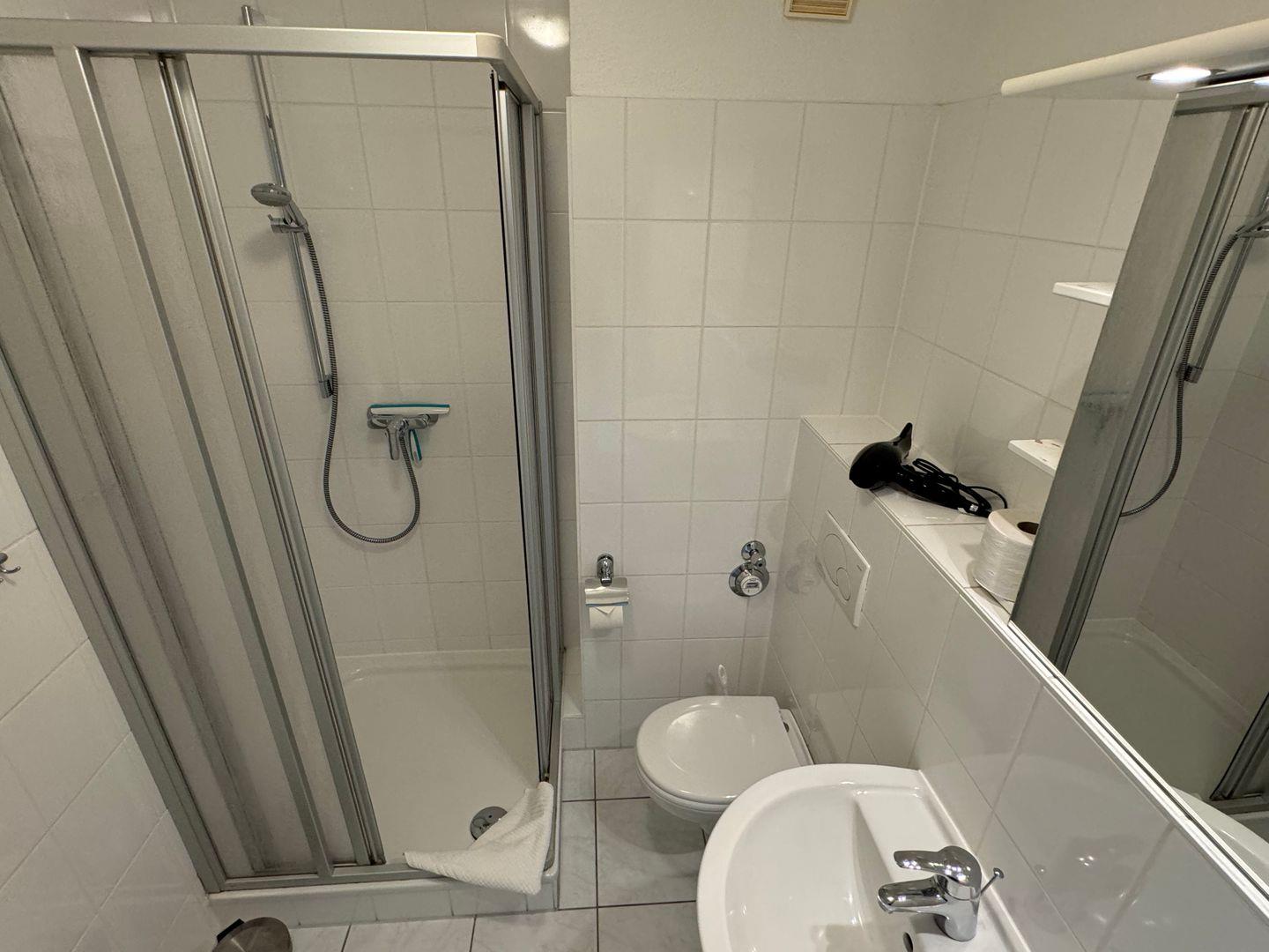 Das Schlafzimmer verfügt über ein gemütliches Bett( 1.80 x 2.00 m),nd der Vinylboden sorgt für ein modernes und allergikerfreundliches Ambiente. Das Badezimmer ist mit einer Dusche, einem Waschbecken und einem WC ausgestattet und bietet Ihnen alle Annehmlichkeiten, die Sie benötigen, um Ihren Aufenthalt so angenehm wie möglich zu gestalten. Handtücher sind ebenfalls vorhanden.