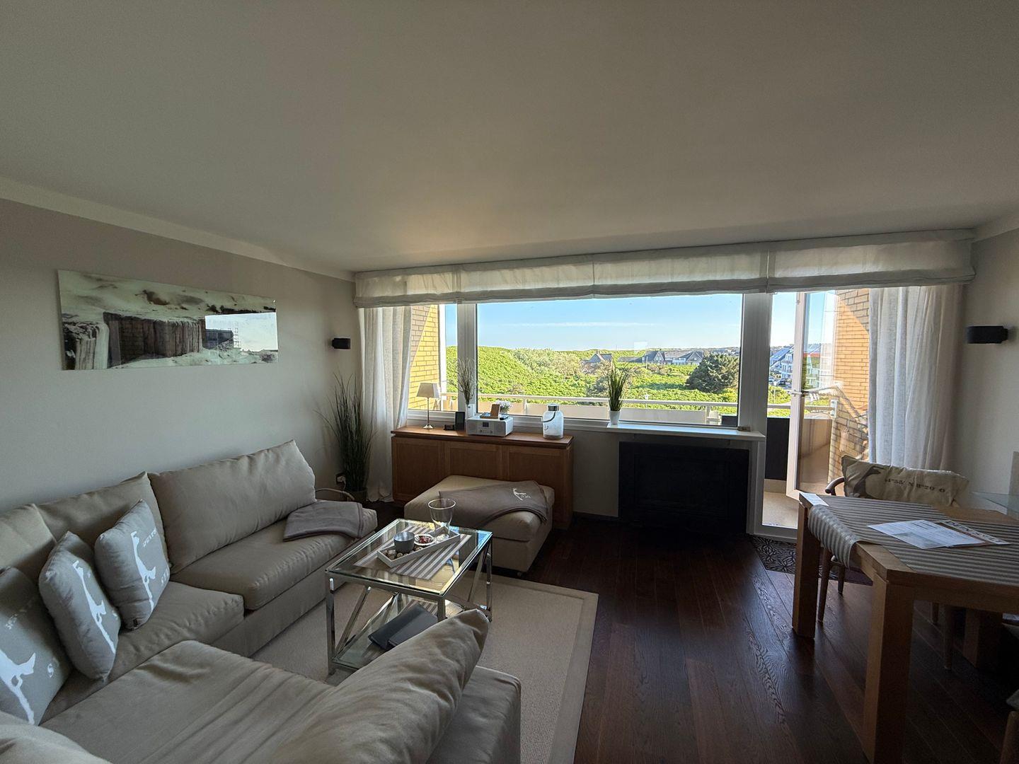 Betreten Sie die moderne und lichtdurchflutete Ferienwohnung, die mit einem hohen Maß an Komfort und Gemütlichkeit ausgestattet ist. Das offene Wohnkonzept vereint Wohnzimmer und Küche, sodass Sie beim Kochen den herrlichen Blick in die Dünen genießen können. Der Kaminofen im Wohnbereich sorgt nicht nur für behagliche Wärme an kühleren Tagen, sondern auch für eine romantische Stimmung am Abend. Das bequeme Designersofa lädt zum Entspannen ein und der große Fernseher mit DVD sowie ein Radio/CD-Player bietet Unterhaltung für gemütliche Stunden.