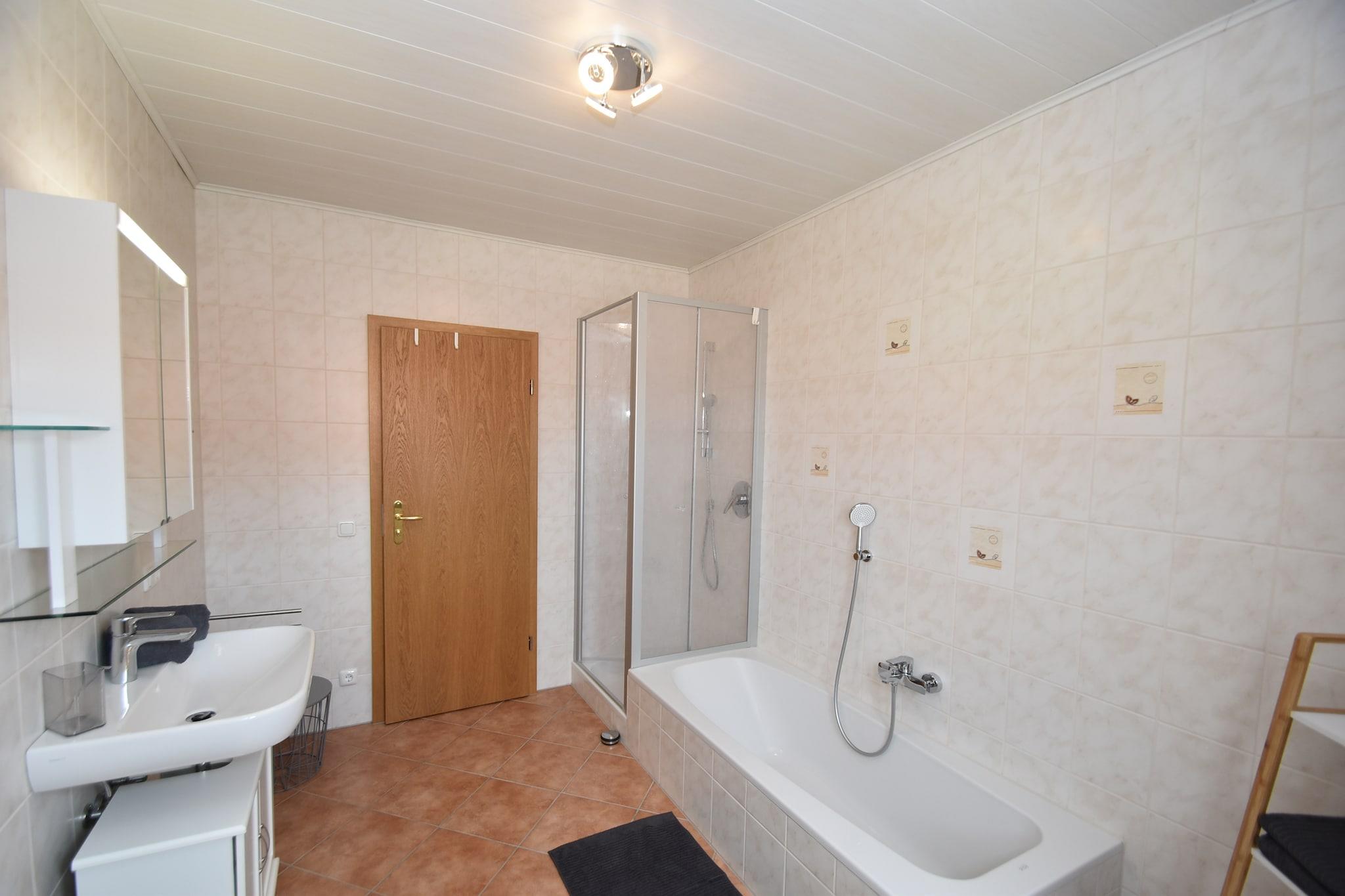 Denne lyse og moderne lejlighed på 1. sal i et velholdt hus ligger i det rolige samfund med biodiversitet Tännesberg i Øvre Pfalz. Beliggende ved foden af Schlossberg tilbyder det øjeblikkelig adgang til fred, natur og afslapning. Fra din private balkon kan du nyde en flot udsigt over det bakkede landskab og tætte skove. Tännesberg ligger direkte på den berømte Goldsteig vandresti og har en fascinerende geologisk natursti. Friluftselskere vil finde masser at udforske, hvad enten de vandrer dagligt i smukke omgivelser, tager en dukkert i den naturlige svømmedam eller prøver den nærliggende høje rebbane. Upper Palatinate Lake District er tæt på og perfekt til vandsport. Fantastiske dagsture omfatter den bayerske skov, Regensburg, Weltenburg Abbey, Walhalla, Pilsen og endda Prag.