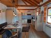 Das 98 qm große Ferienhaus besteht aus zwei Wohnebenen und strahlt mit viel Holz eine heimelige Wärme und gemütliche Atmosphäre aus. Im Erdgeschoss befinden sich das Bad mit großer, ebenerdiger Regendusche, ein Schlafzimmer mit Doppelbett sowie die gut ausgestattete Wohnküche (Kühlschrank, Spülmaschine, Kaffee- und Senseo-Padmaschine, Wasserkocher, Toaster, Eierkocher, Mikrowelle).