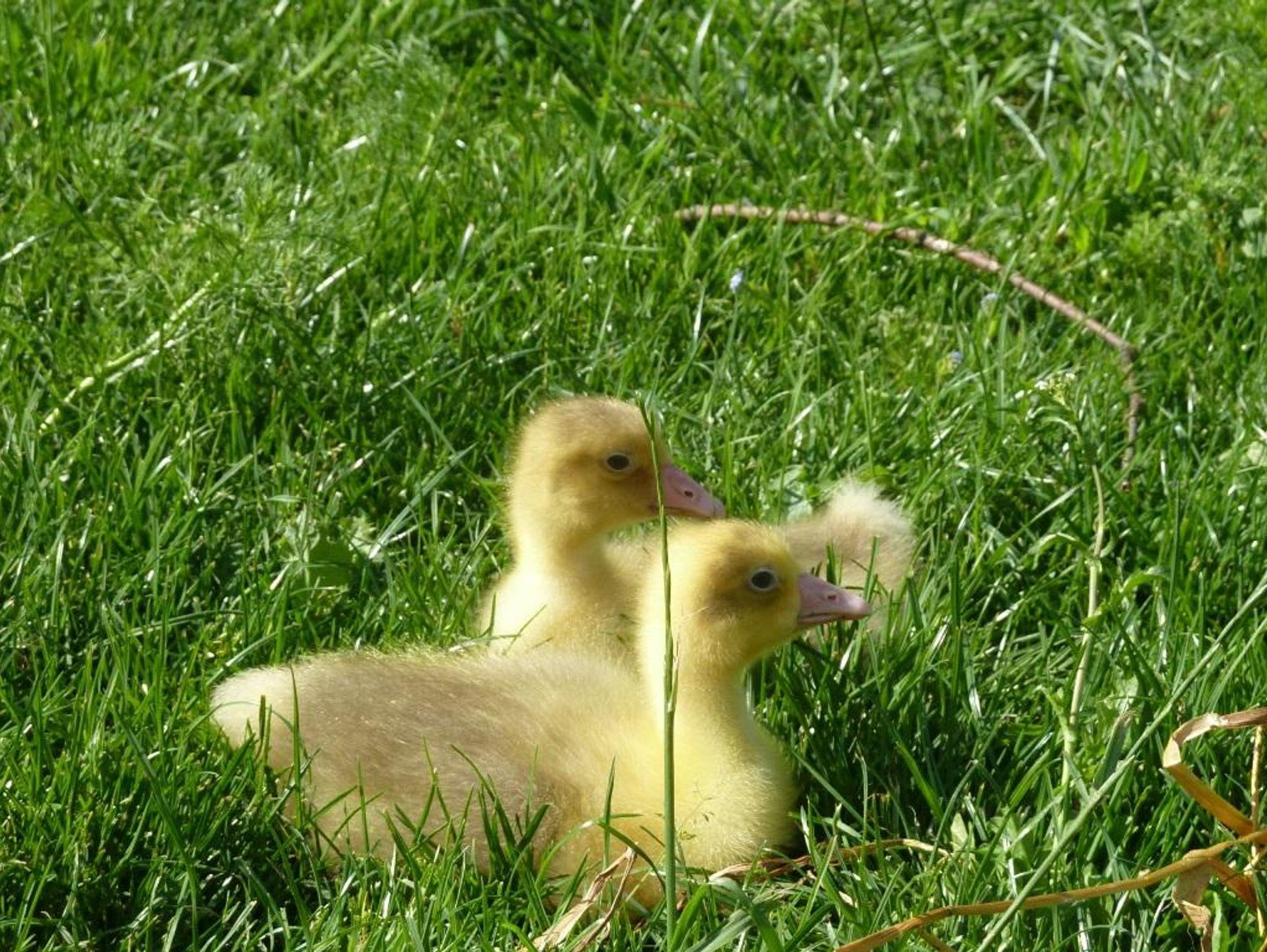 Auch Enten, Gänse und Hühner werden auf dem Hof gehalten. Auf den umliegenden Wiesen laufen von April bis Oktober Schafe. Ab März/April springen dort die kleinen Lämmer voller Lebensfreude umher.
