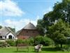 Nebenan liegt das Haupthaus, ein historischer ebenfalls reetgedeckter Haubarg.