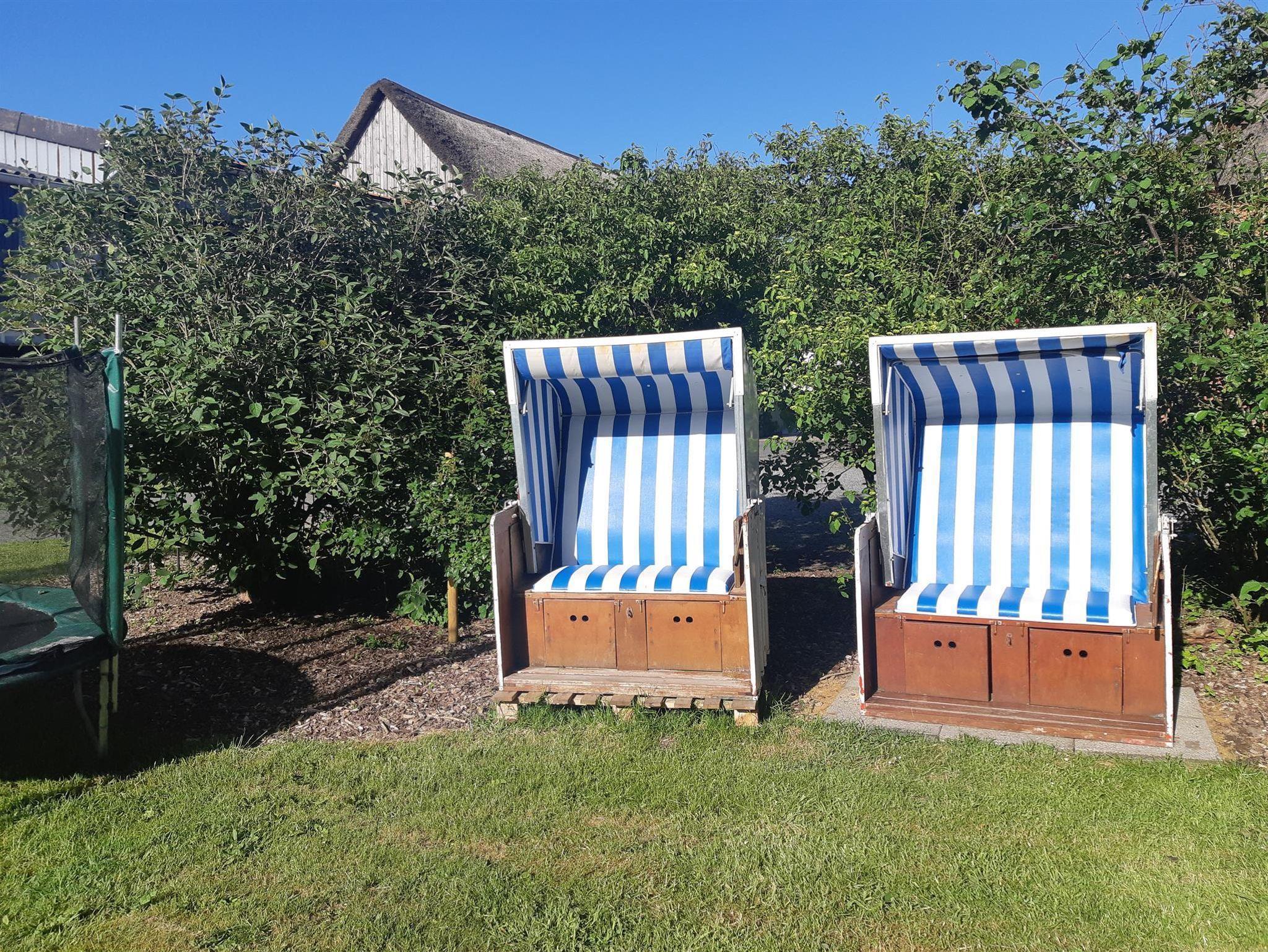 Im Garten und im Innenhof laden Sitzplätze und Strandkörbe zum Verweilen ein.