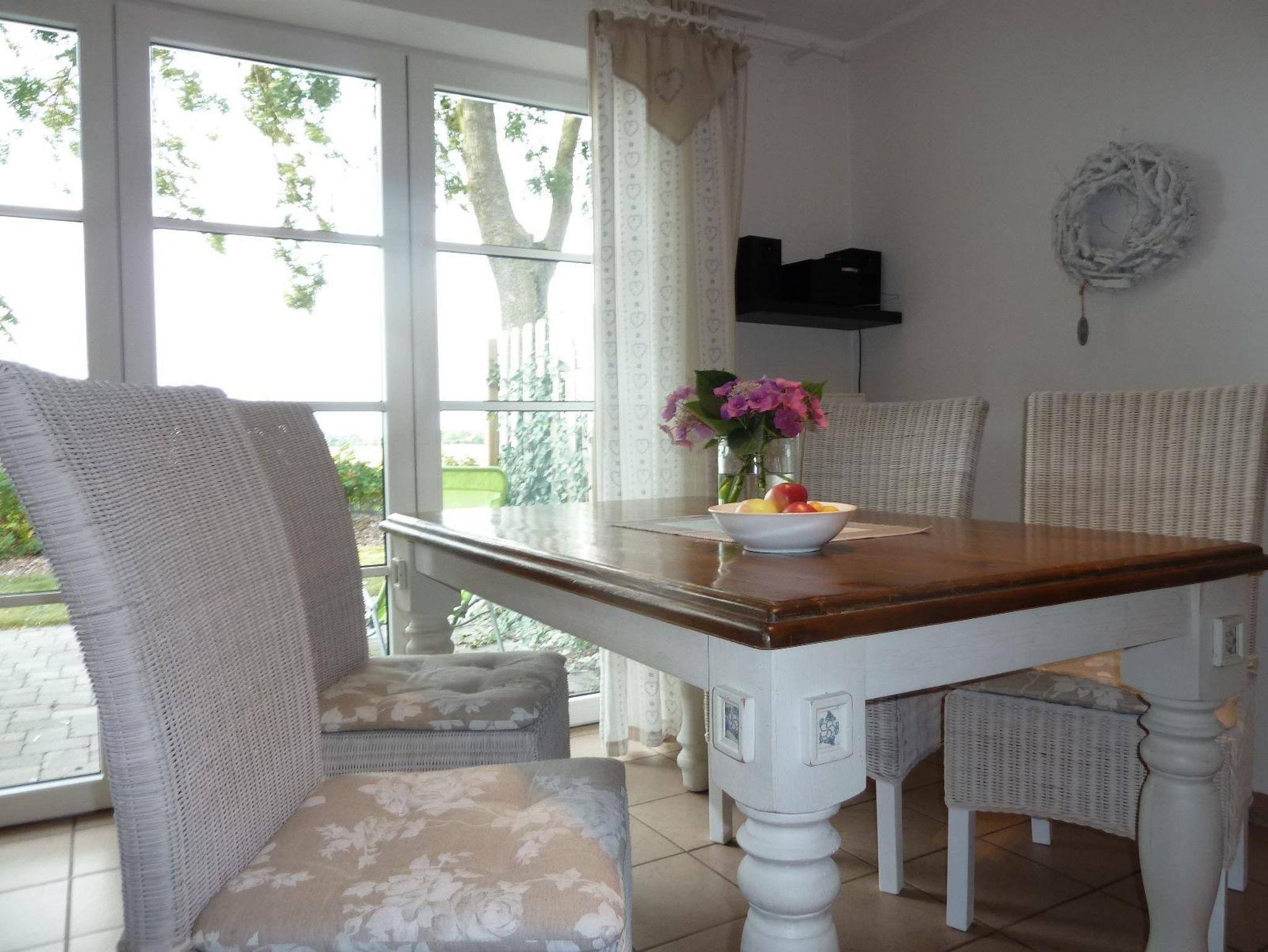 Sie wohnen im reetgedeckten Ferienhaus in einer von drei nebeneinander liegenden und liebevoll eingerichteten Ferienwohnungen. Jede Wohnung mit separatem Eingang, eigener Terrasse und herrlichem Ausblick über die Eiderstedter Landschaft.