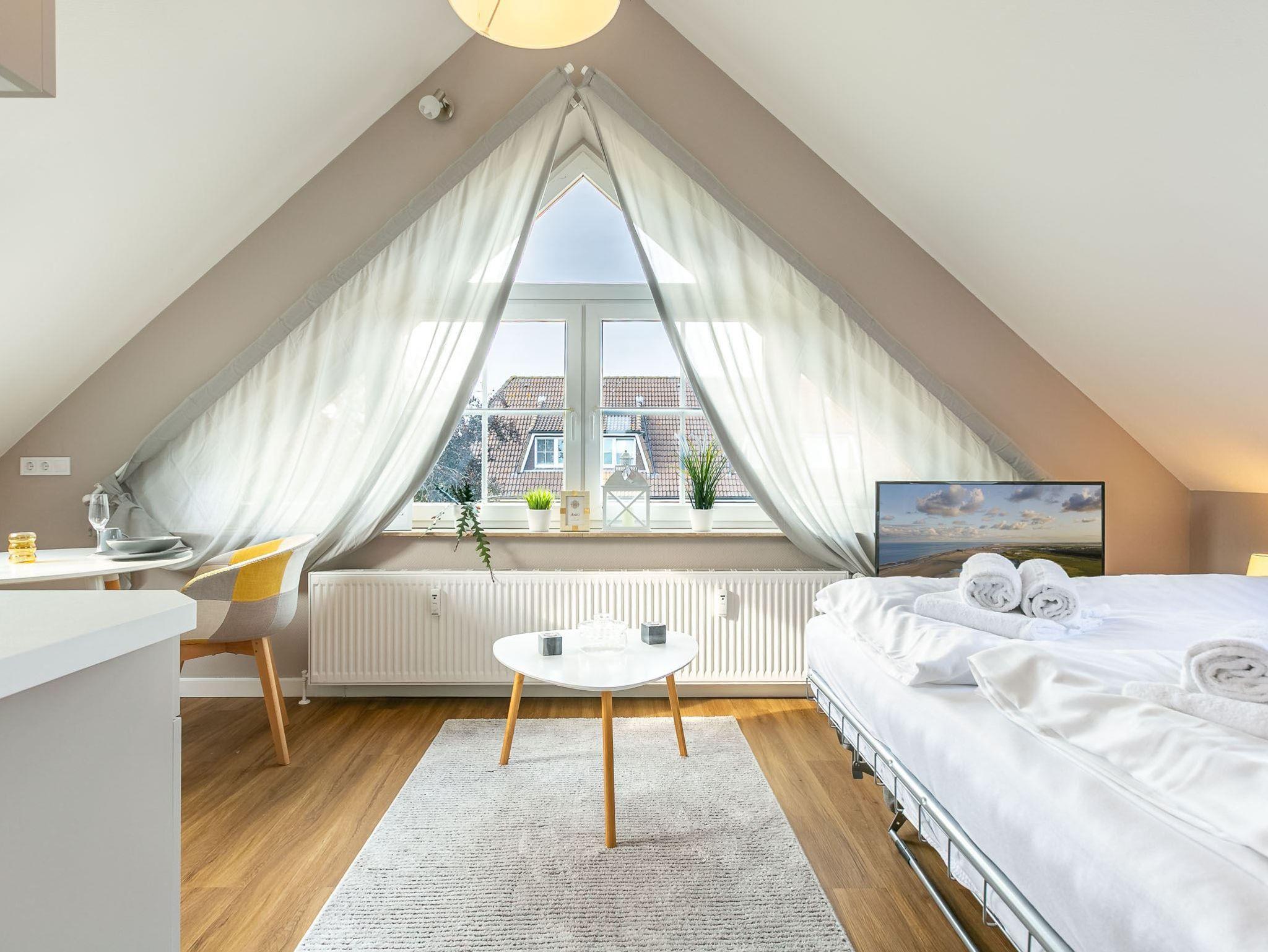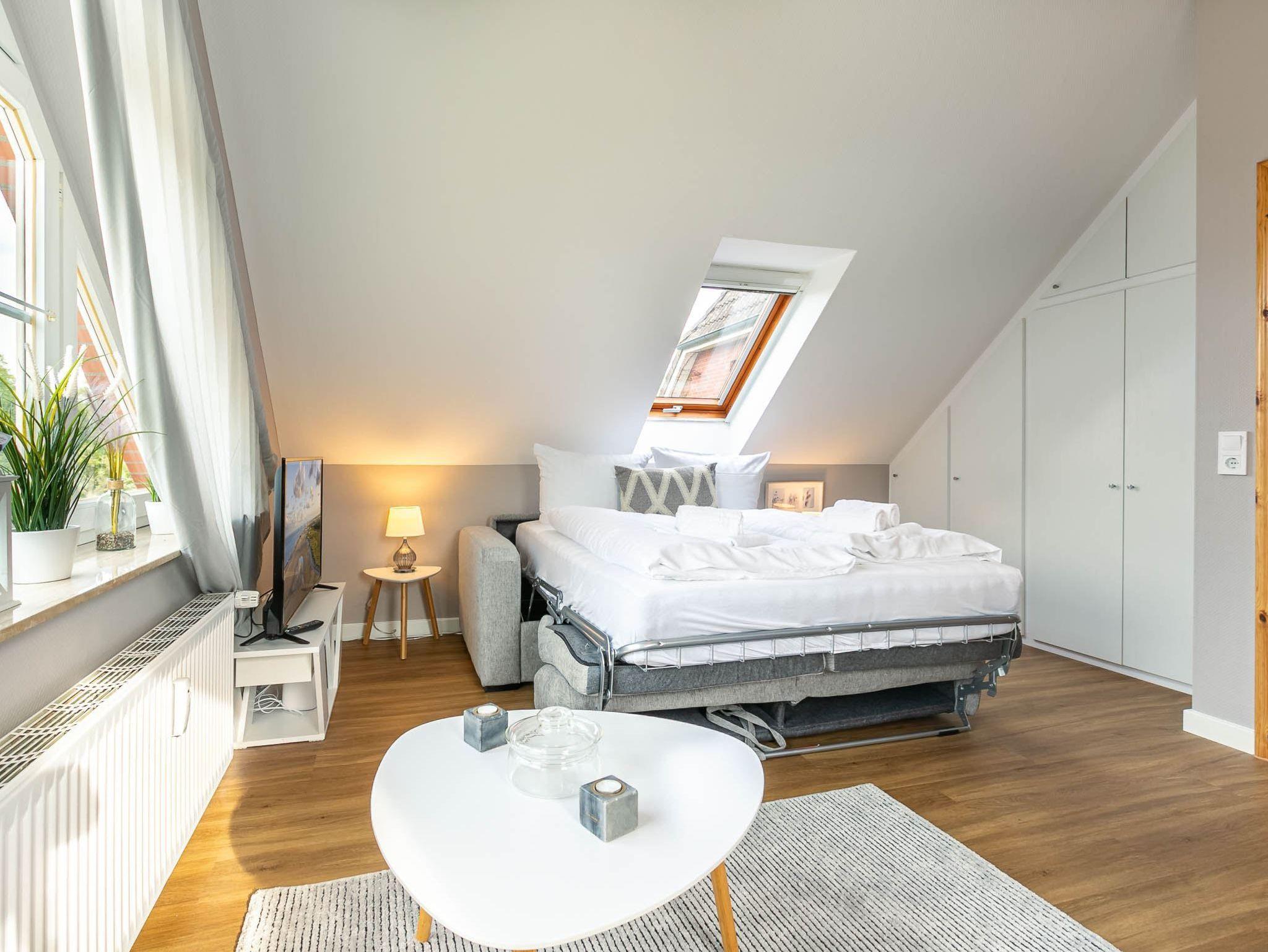 Exklusives Studio-Appartement Kleine Bö 5 im Haus Kleine Bö mit 1 Zimmer und ca. 32 m² auf 2 Ebenen (EG, OG) für bis zu 2 Personen. In ruhiger Lage nah zum Deich der Eider in der Hafenstadt Tönning bei Sankt Peter-Ording. Der ideale Erholungsort für eine Auszeit fernab des Trubels mitten in der Natur des Weltnaturerbes Wattenmeer. Bis zu zwei Hunde sind nach Anmeldung herzlich willkommen.