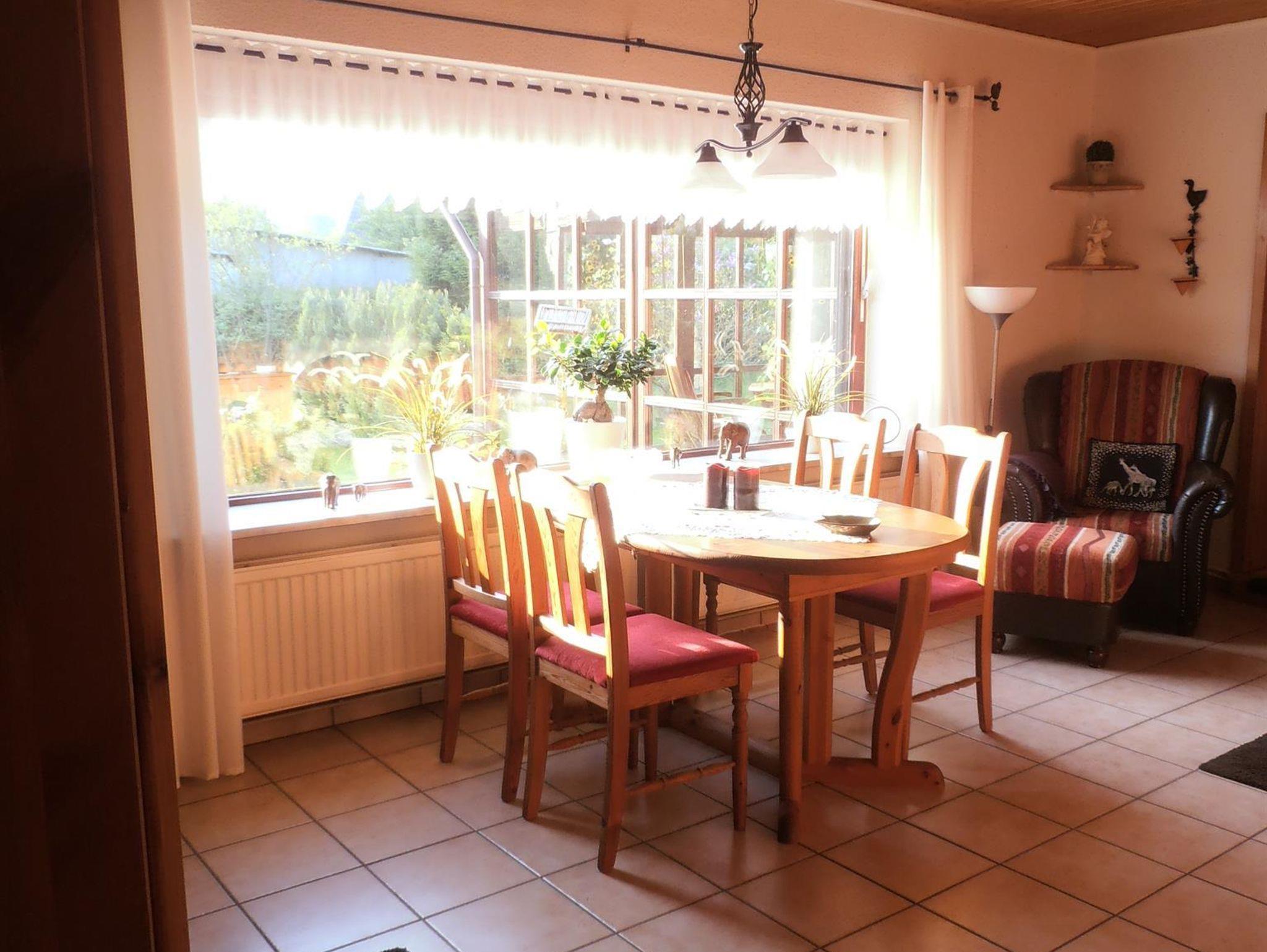 1 Badezimmer WC + Dusche, 1 Wintergarten. Die Ferienwohnung liegt ca. 5 min zu Fuß von der Eider entfernt.
