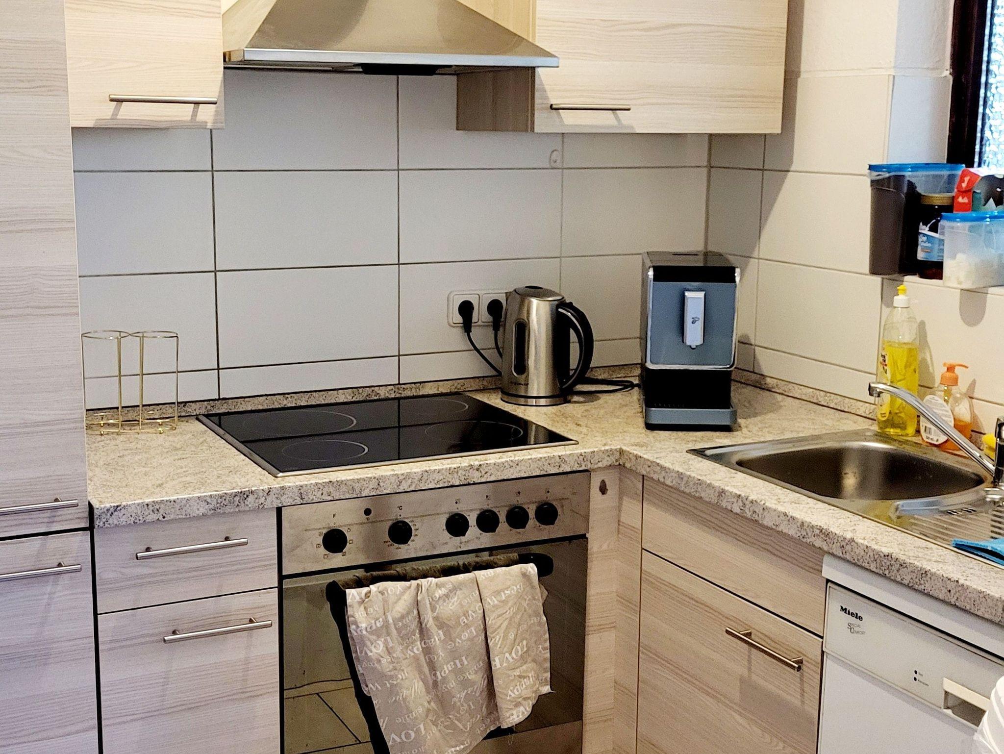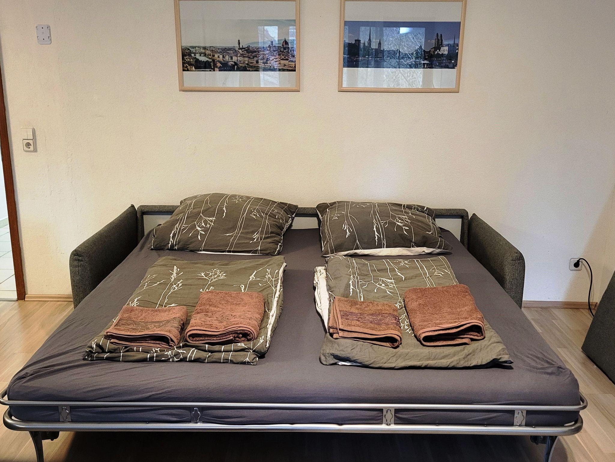 Die Lage in dieser Unterkunft ist eine der besten in Tübingen! Trotz der zentralen Lage ist es sehr ruhig, da es in zweiter Reihe gelegen ist. Ein Balkon ergänzt die Vorzüge. Ein Privatparkplatz steht Ihnen an der Unterkunft ebenfalls kostenfrei zu Ihrer Verfügung. Die Unterkunft ist sehr geräumig und insgesamt 75m2 groß. Sie umfasst eine voll ausgestatte Küche mit Geschirrspüler, Kühlschrank, Mikrowelle, Küchengeräten und Nespresso Kaffeemaschine. Das Wohnzimmer ist mit einem Esstisch, einem Schlafsofa einem Arbeitstisch und Kabel TV ausgestattet und ist mit seinen 40m2 extrem großzügig geschnitten. Vom Wohnzimmer aus können Sie die schöne Aussicht auf dem Gemeinschaftsgarten und das Schloss Tübingen genießen. Das Schlafzimmer ist mit einem Boxspring Doppelbett, Kommode und zwei großen Kleiderschränken ausgestattet. Handtücher und Bettwäsche liegen für Sie bereit. Kostenfreies WLAN gehört zu den Vorzügen des Apartments, das Sie in 200 m Entfernung vom Stadtzentrum von Tübingen erwartet. Sie erreichen vom Appartement aus nach 200m die Altstadt Tübingens, in 2,4 km das Französische Viertel und nach nur 400 m das Schloss Hohentübingen. Vom Flughafen Stuttgart trennen Sie 21 km. Weiterhin gibt es auch einen Gemeinschaftsgarten der direkt an einem Bach gelegen ist. Die Wohnung liegt im Erdgeschoss. Wir sprechen Deutsch, Englisch, Russisch und Ukrainisch.