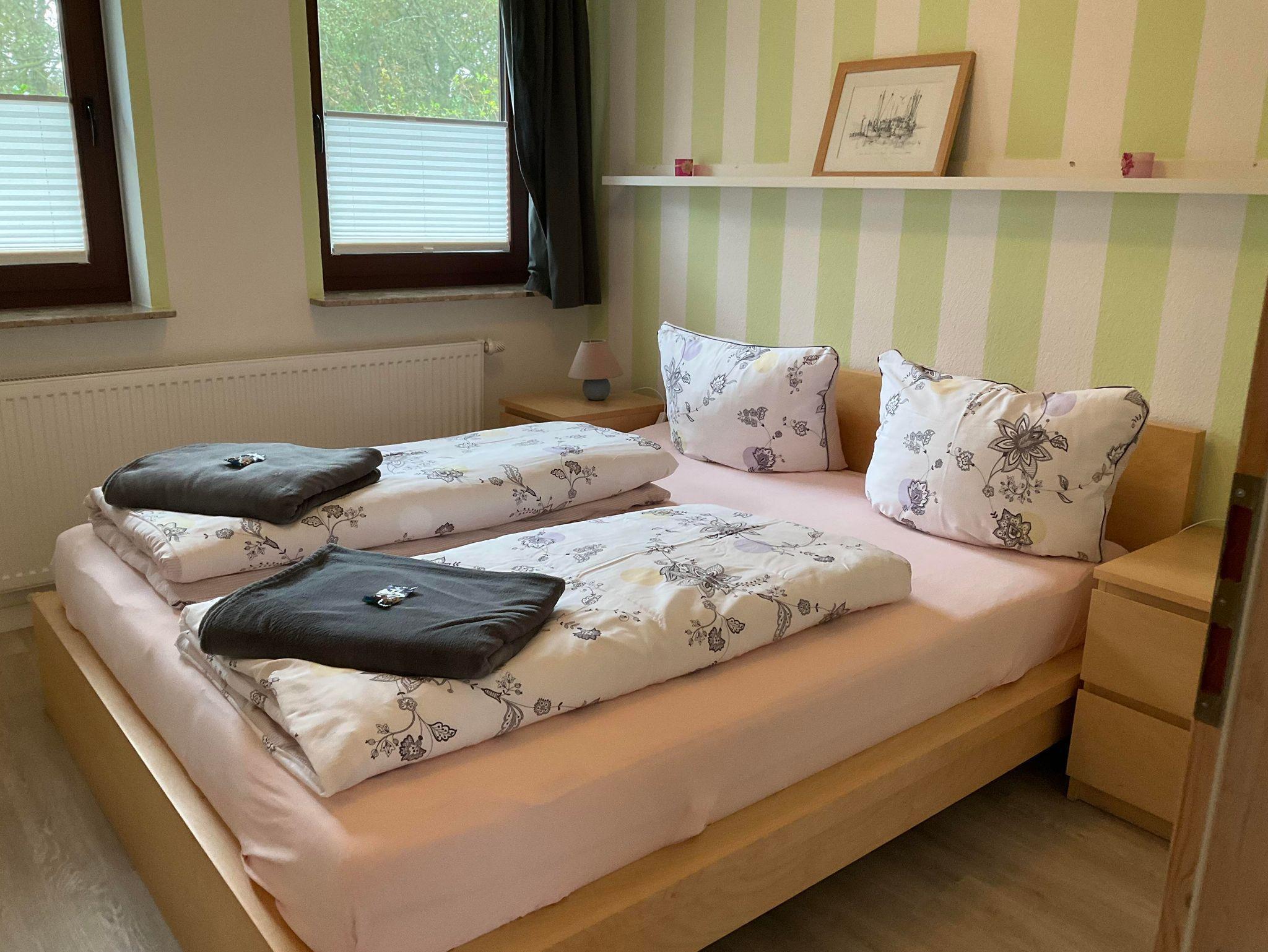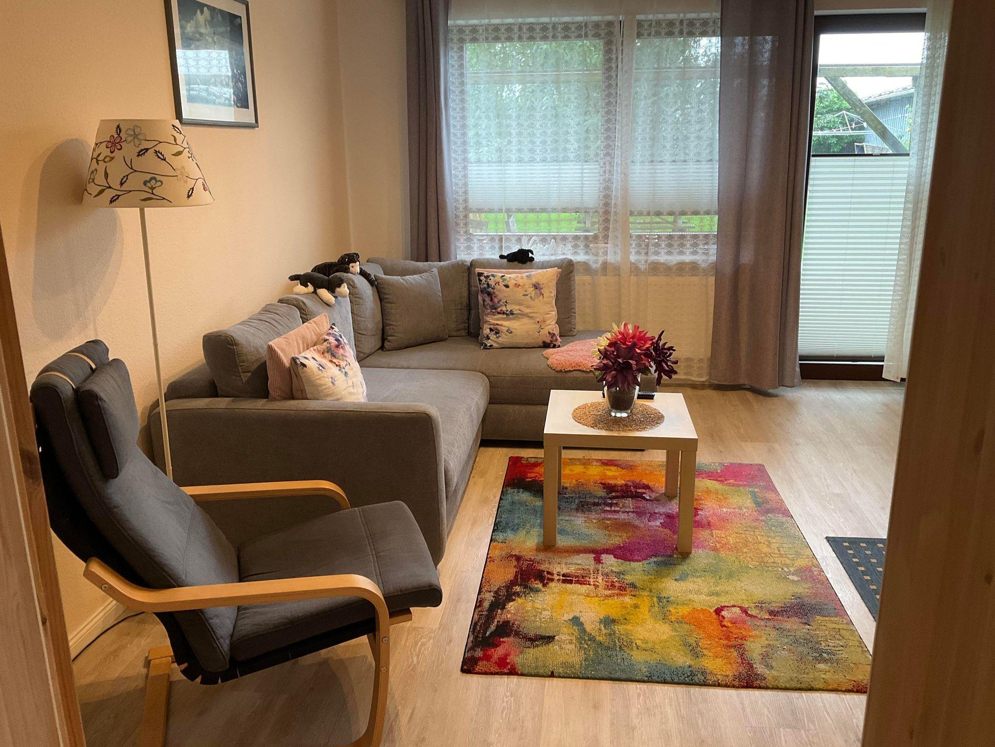 Diese Wohnung ist ca. 40 m² groß und hat einen Schlafraum für 2 Personen mit Doppelbett, Bettdecken 140 x 200 cm (die Betten sind 80 x 200 cm groß) und einen Wohn-/Essraum mit einer bequemen Schlafcouch, Bad mit Dusche und WC, Zugang zur Terrasse über den Wohnraum. Die Küche ist ausgestattet mit Cerankochfeld, Backofen, Mixer, Toaster, Kaffeemaschine, Wasserkocher, Eierkocher, Kühlschrank mit Gefrierfach, Fernseher, kleine Musikanlage.