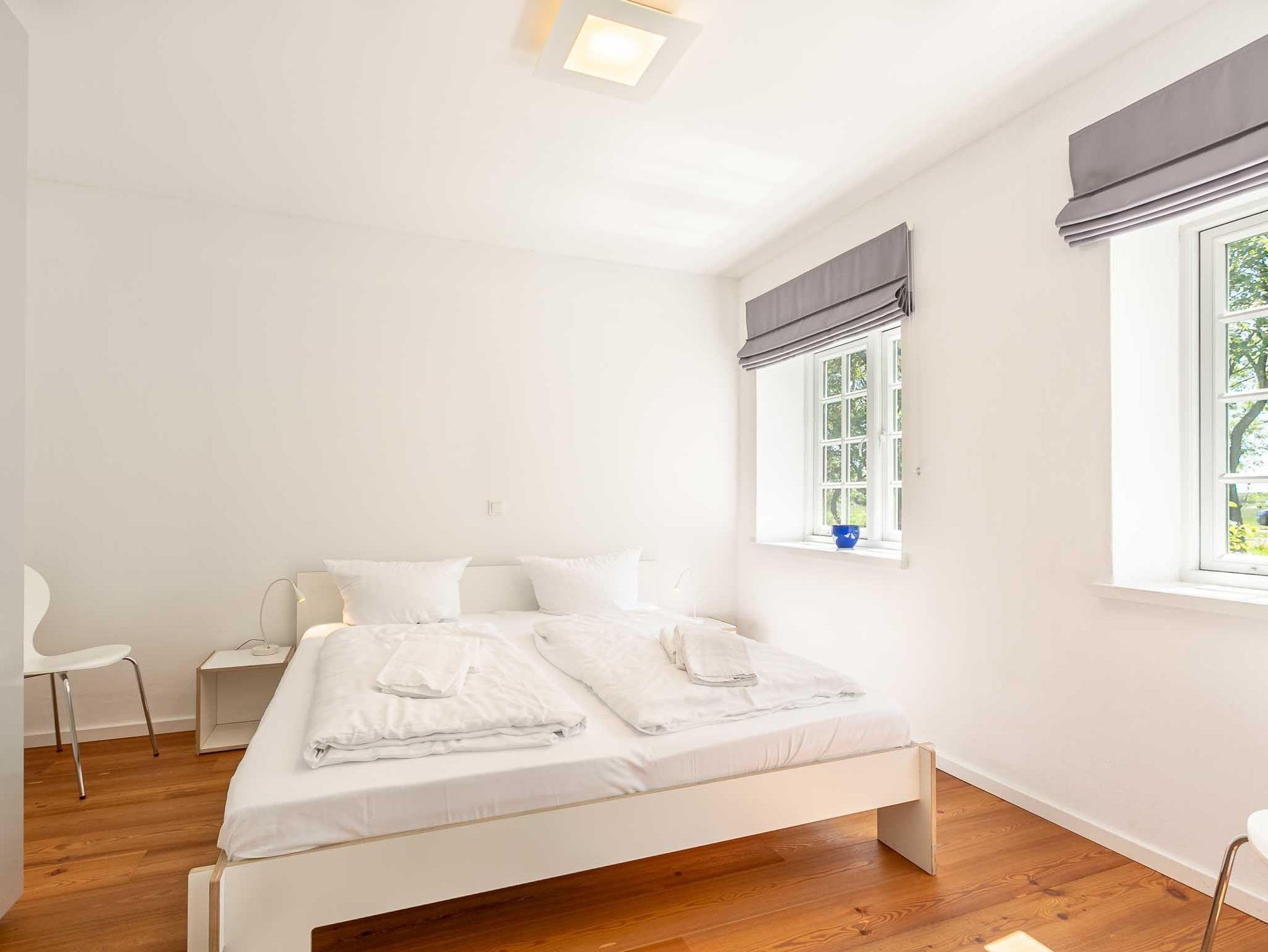 1. Schlafzimmer mit Doppelbett (2x 90x200cm), Kleiderschrank und Stuhl.