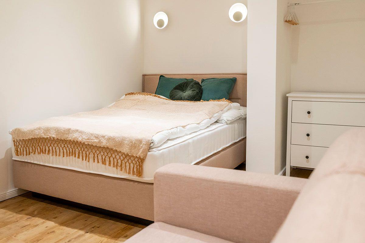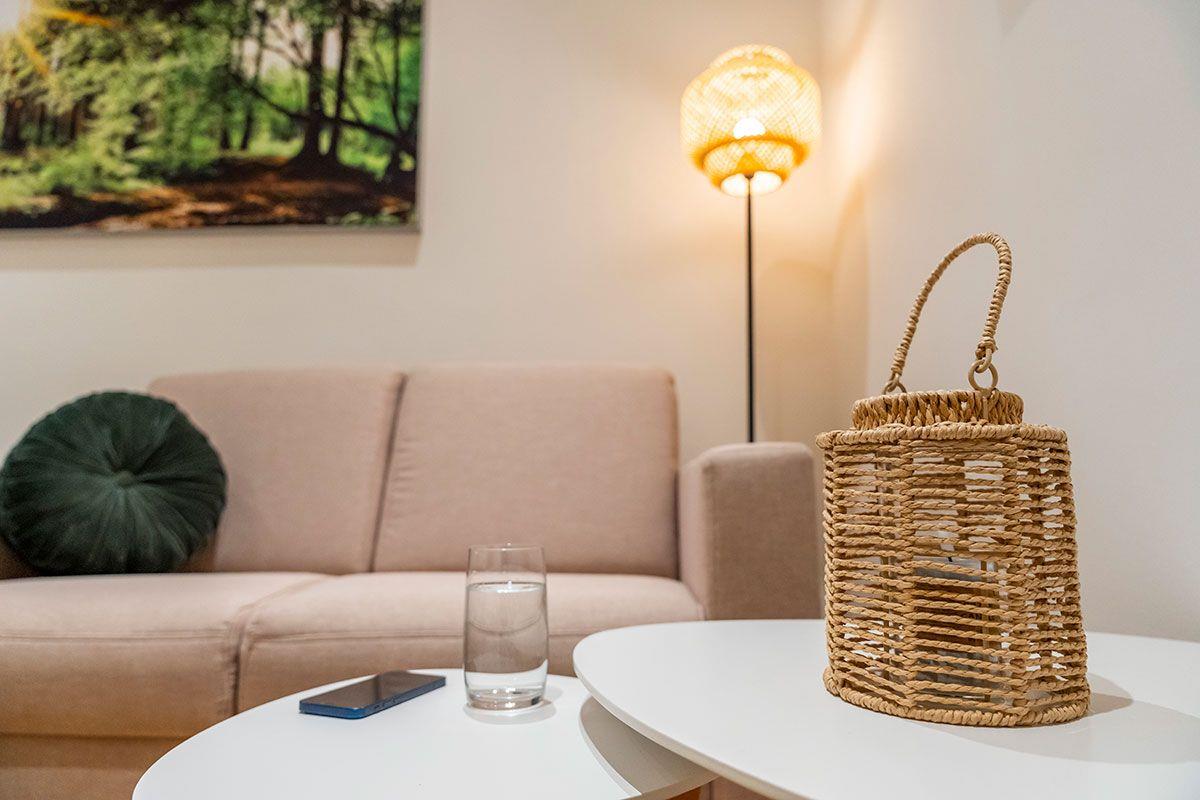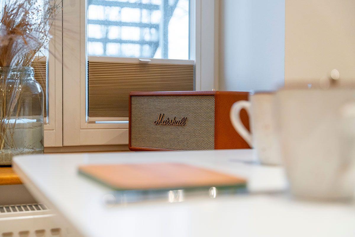 Diese gemütliche Ferienwohnung ist der ideale Rückzugsort für zwei Personen oder Einzelreisende. Helle Möbel und Stoffe sorgen neben den liebevollen Details für einen komfortablen Aufenthalt. Neben der modernen Ausstattung ist das belichtete Waldbild ein echtes Highlight und sorgt für Wohlfühlatmosphäre. Für Musikfans darf der Marshall Music Player nicht fehlen. Gewidmet ist dieses Schmuckstück Hans-Timm Hinrichsen, besser bekannt als „Timsen“, dem charismatischen Frontmann und Sänger der Band Santiano. Geboren in Schleswig-Holstein und auf einem Bauernhof aufgewachsen lebt und atmet Timsen die raue herzliche Mentalität des Nordens – und das spiegelt sich sowohl in seiner Musik als auch in seiner Liebe zum Plattdeutsch wider.
