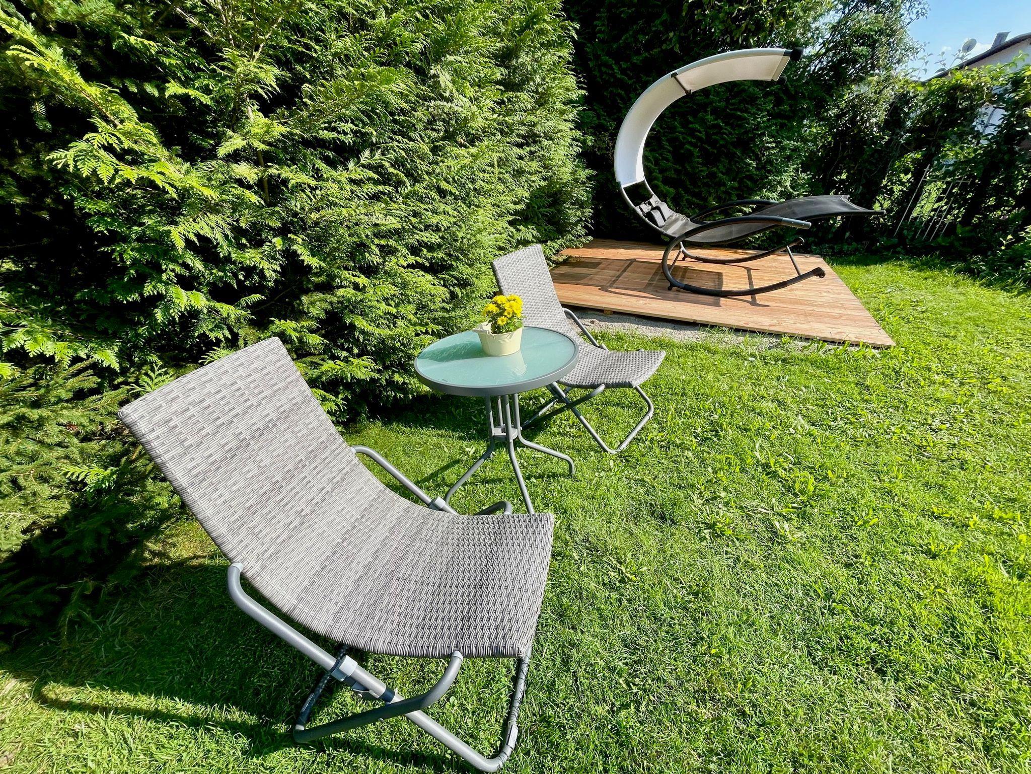 Ein Parkplatz ist auf dem Grundstück sowie weitere kostenlose Parkplätze an der Straße direkt am Haus vorhanden. Im ca. 400 qm großen Garten stehen Tische, Stühle und Sonnenliegen für euch bereit.