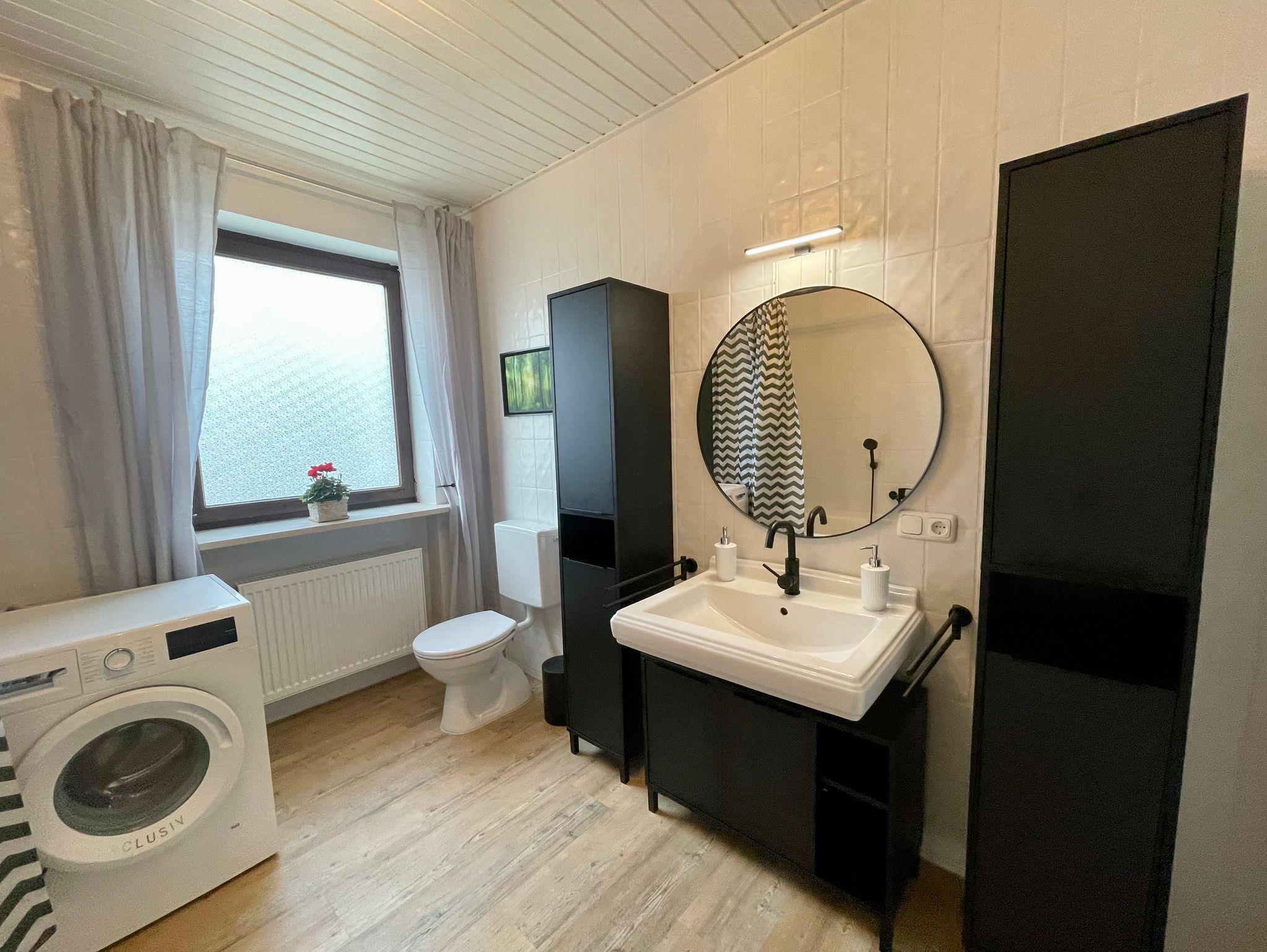 • ein helles Bad mit Dusche/Badewanne bzw. Dusche mit Waschmaschine