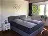 Für einen erholsamen Schlaf steht ein Boxspringdoppelbett mit einer Größe von 1,80 x 2 m bereit.