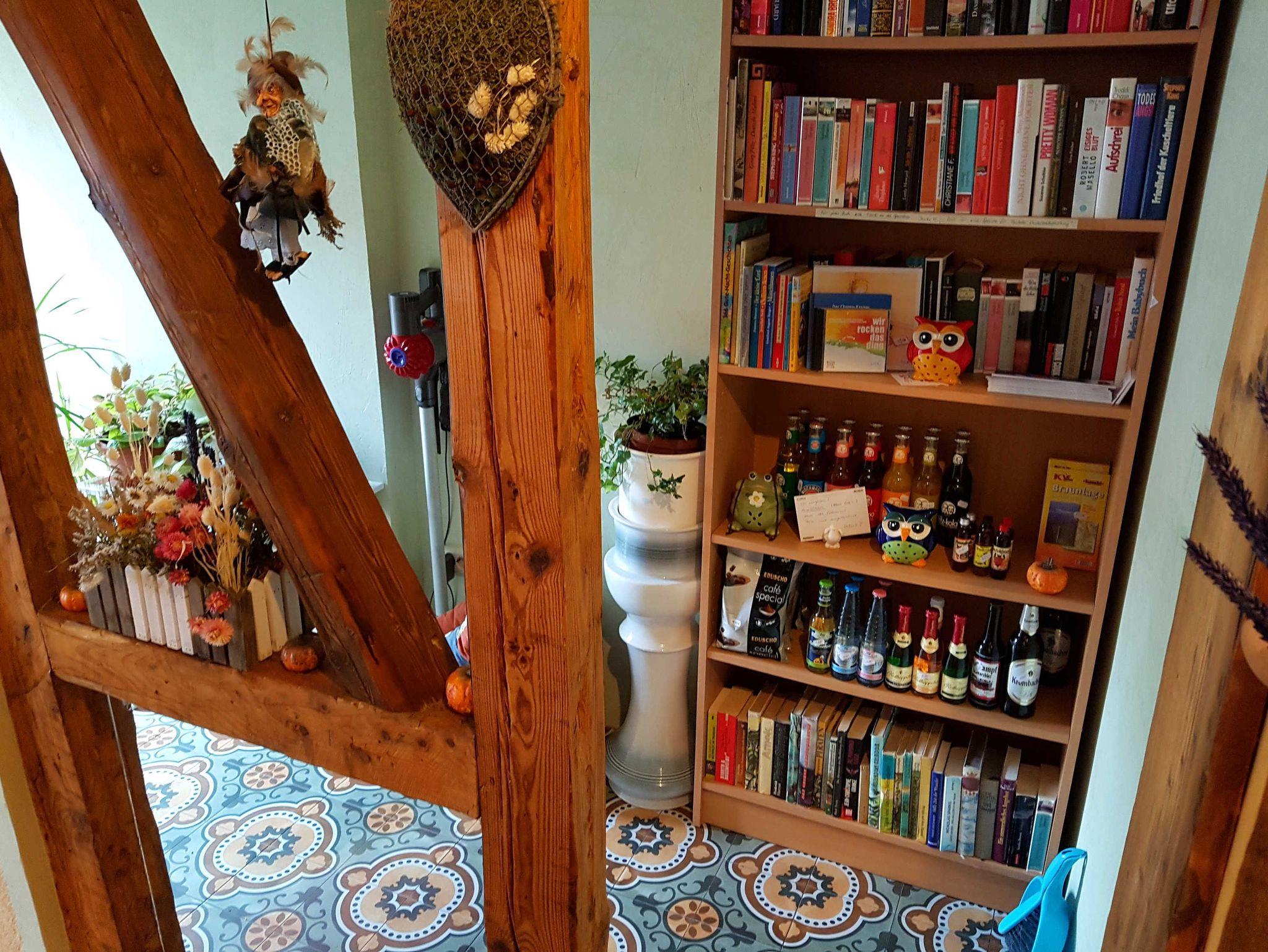 Im Flurbereich des 1. Obergeschosses finden Sie eine Informationsecke mit diversen Prospekten sowie eine kleine „Minibar“ mit käuflich zu erwerbenden Produkten wie Sekt und Wein.