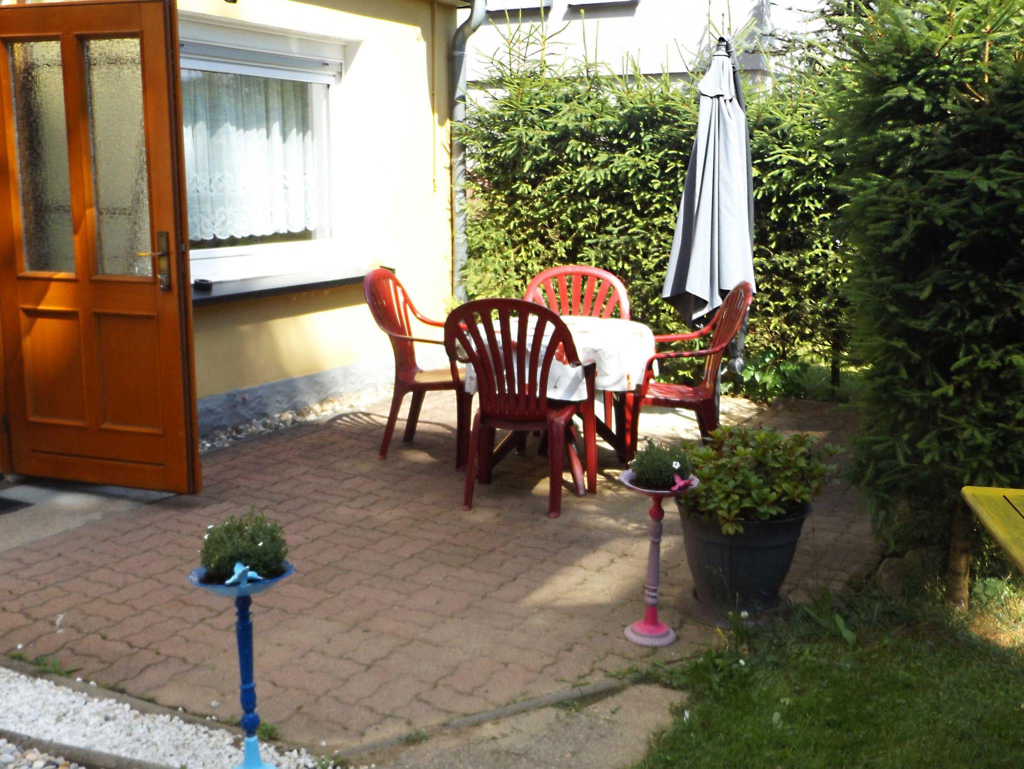 Ruhig gelegene, gemütliche Nichtraucherwohnung mit Terrasse, Küche, Wohnzimmer, Schlafzimmer, Dusche/WC. Die kleine separate Küche ist mit Herd ausgestattet. Im Wohnzimmer befindet sich eine Couch mit Schlaffunktion. Im Garten befindet sich eine gemütliche Sitzecke mit Grillmöglichkeit.