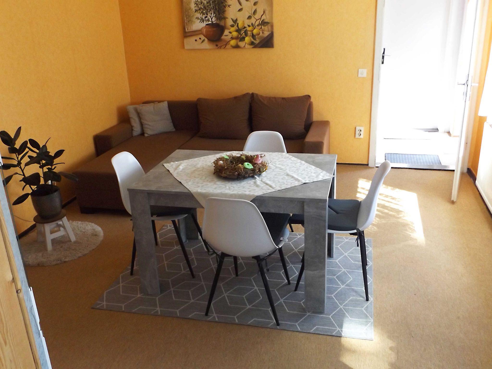 Gepflegtes Grundstück mit Einliegerwohnung und separatem Eingang. Aussstattung: Küche mit Herd, Wohnzimmer mit Schlafcouch, Ferseher und Radio, Schlafzimmer, Bad mit Dusche/WC, großer Parkplatz am Haus, gemütliche Terrasse mit Grillmöglichkeit. Nichtraucherwohnung. Die Ferienwohnung bietet Platz für bis zu 4 Personen. Ein Kleinkind ist zusätzlich möglich.