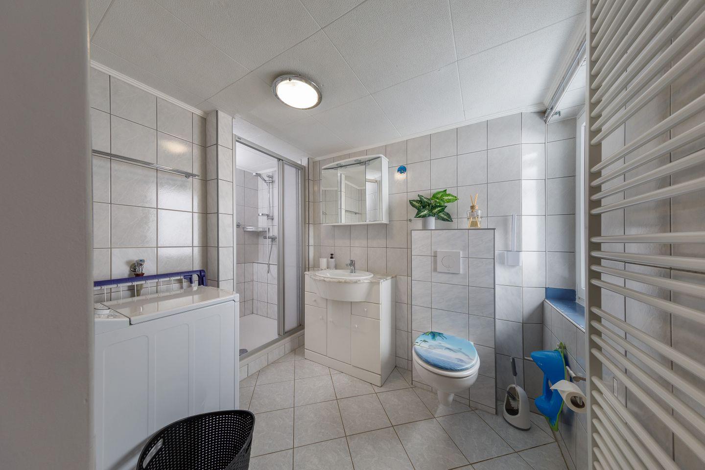 Das Badezimmer grenzt an die Küche und verfügt neben der Grundausstattung über eine