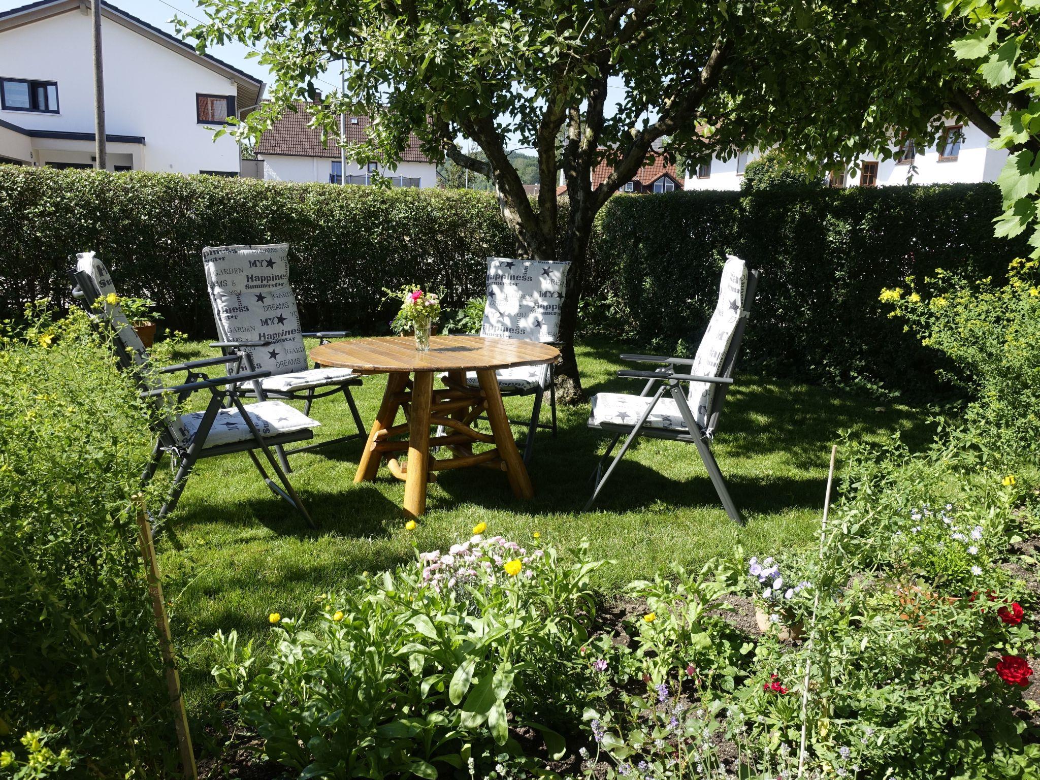 All everyday amenities are within walking distance, such as a supermarket, butcher, post office, doctors and restaurants. The nearest bus stop is a five-minute walk away, the Deutsche Bahn train station about 15 minutes away. It is only 15 minutes by bus, train or car to the beautiful Memmingen, also called the “gateway to the Allgäu”, a little town with a historical centre, many shops, restaurants, bars and museums. Owing to the location on the outskirts of Tannheim, you can go on extensive walks or cycle tours on the signposted paths through meadows and forests or along the Iller. It is especially worth visiting the lovely Oyhof, a game enclosure near the Iller, where you can watch deer and a group of wild boar. It can be combined with the nearby forest educational trail. Other places of interest at Tannheim are the Celtic burial mounds, the St. Martin parish church, the castle and the airfield for scenic Alpine flights (with the option of booking a tandem jump for the brave). It is also worth seeing the mill built over 400 years ago by monks, a family-run enterprise since 1850, with an adjoining bakery. There is a further cultural highlight near Tannheim: the Oberschäbische Barockstrasse with its many sacral buildings from the baroque era.