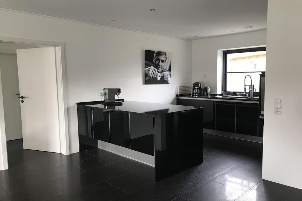 Gode ??ting kommer til dem, der venter. Vi har kendt Britta (...bager de bedste kager i hele Eiderstedt...) og Robert (...har et talent for forretning, ejendomme og smukke ting...) i lang tid, og da vi så, at de ville sælge deres vidunderlige hus, skete alt ret hurtigt. Et nyt hjem i skandinavisk stil i ét plan – lige i hjertet af Tating Village, med en sandklit oversået med strandgræs – denne kombination af dansk charme og moderne design gør ejendommen simpelthen HYGGE. Indenfor – 150 perfekt opdelte kvadratmeter i stueplan, plus to store sydvendte terrasser til afslappet udendørsliv, der giver mulighed for maksimal afslapning uden besvær. Og den nye perle i halskæden fra THE ROOMS er et sandt blikfang! Hvis du kan lide moderne – HER GO YOU GO – er det sådan her: Sorte gulve med gulvvarme, der står i kontrast til glatte hvide vægge – det er HOOK-LINE. Et luksuriøst køkken af ??fineste kvalitet, badeværelser, der er fantastiske, fire dobbeltværelser, et spisebord med Eames-stole, hvor du også kan spille billard, plus en XXL-sofa, der masserer sanserne som BASS-LINE i din yndlingssang. Mange, mange gulv-til-loft-vinduer lukker lys ind i den rummelige stue-spisestue, giver udsigt til terrasserne og forbinder husets indre og ydre i et vidunderligt arrangement. Apropos udendørs – begge terrasser er perfekt udstyrede. En til soldyrkere med en strandstol og et siddeområde i strandklubben. Den anden har loungemøbler, et grillområde og et glastag, som også er et fantastisk sted at sidde, når vejrguderne ikke er i godt humør – ELLER vi har en af ??de tropiske nætter om sommeren (vi skulle efter sigende få flere af dem...). Historien om værelse 27a ville ikke være komplet uden saunaområdet – ideelt som en ONTRO efter en begivenhedsrig dag – uanset regn eller solskin. Åh ja, og som altid tilbyder THE ROOMS komplette faciliteter med reduceret komfort: - Stort dobbeltsidet køle-/fryseskab ? Inklusive æggeterningmaskine - Vinkøleskab - Dampovn - Mikrobølgeovn - Miele vaskemaskine - Miele tørretumbler - Opvaskemaskine - Boxmadras - Bose lydsystem - Fladskærms-tv - Akustiklofter - Brusekabiner - Badekar - Indbyggede skabe - Carport - Strandstol - Havemøbler - Weber-grill - Indhegnet (bag) klitgrund Alt andet du behøver for at slappe af og finde dig til rette er der – vi lover – fra A til ALT service, glas og bestik, til B til sengelinned, håndklæder og badekåber, til Z - TILBEHØR så du kan spille billard... Og som INFO til alle arbejdsnarkomaner, der ikke rigtig kan give slip, selv på ferie. Eiderstedt-halvøen, og dermed også Tating, har INGEN gode netværksforbindelser. Fiberoptiske eller andre højhastighedsnetværk er ikke så veludviklede, som du måske er vant til derhjemme (og det er vi heller ikke...). Derfor er der oprettet en Wi-Fi-forbindelse til dig via en Vodafone GigaCube fra mobilnetværket, som (for det meste) fungerer fejlfrit til normal husholdningsbrug (websurfing, musiklytning, streaming af tv-video). Desværre er den ikke egnet til at understøtte kommercielle billedredigeringsprogrammer og videokonferencer i kontorkvalitet – det ønsker du alligevel ikke på ferie (hvis du skal være ærlig...). Vi inviterer dig hjerteligt til at prøve VÆRELSE 27a og være vores gæst. Vores mål er ikke at opnå den højest mulige belægningsprocent – ??vi ønsker at tilbyde kvalitetstid og hjælpe dig med at få mest muligt ud af din dyrebare fritid til afslapning.