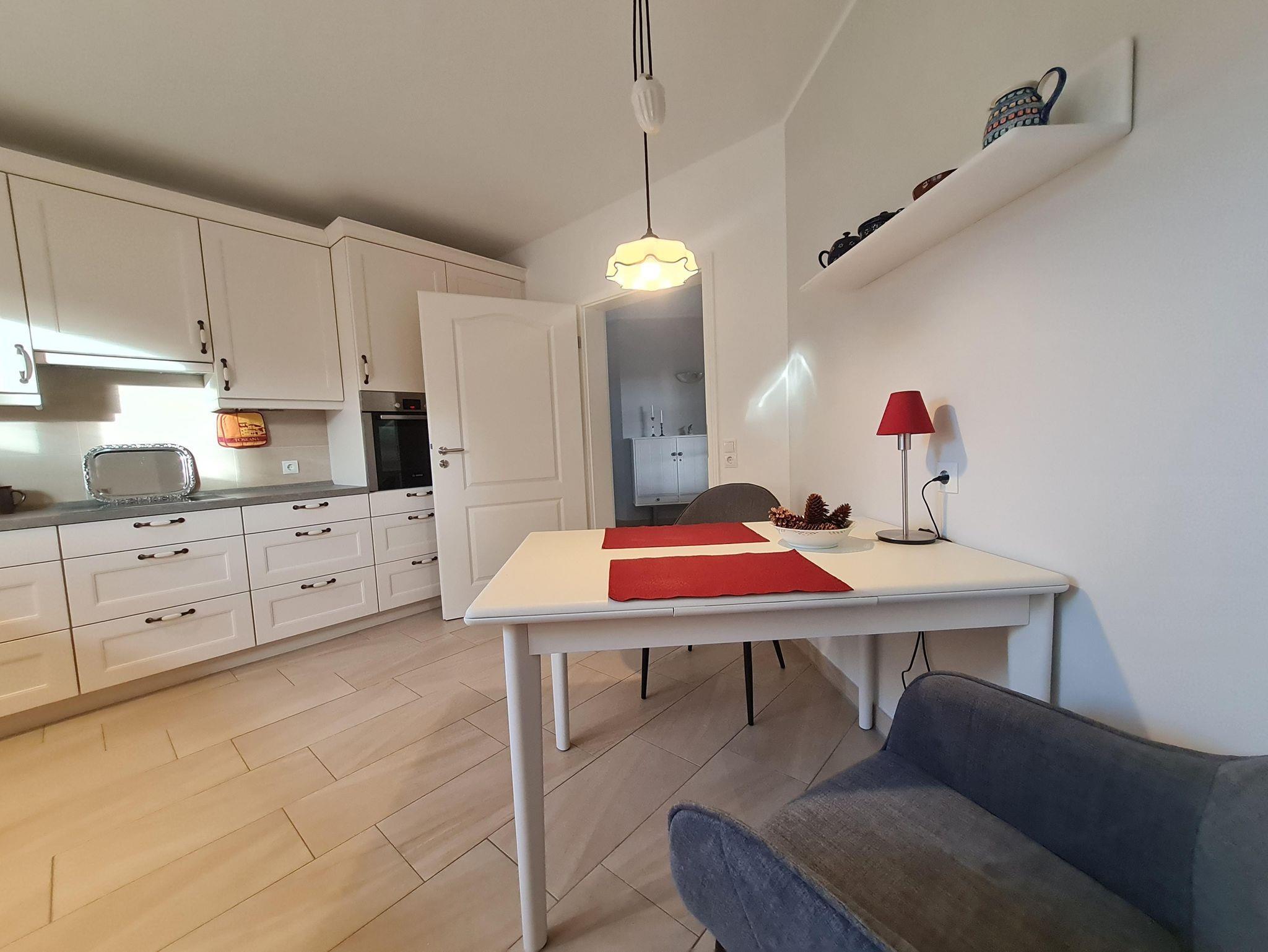 Die komplett ausgestattete, separate Küche mit erhöhtem Backofen, Ceran-Kochfeld, Geschirrspüler lässt keine Wünsche offen und lädt zu kreativem Urlaubskochen ein.