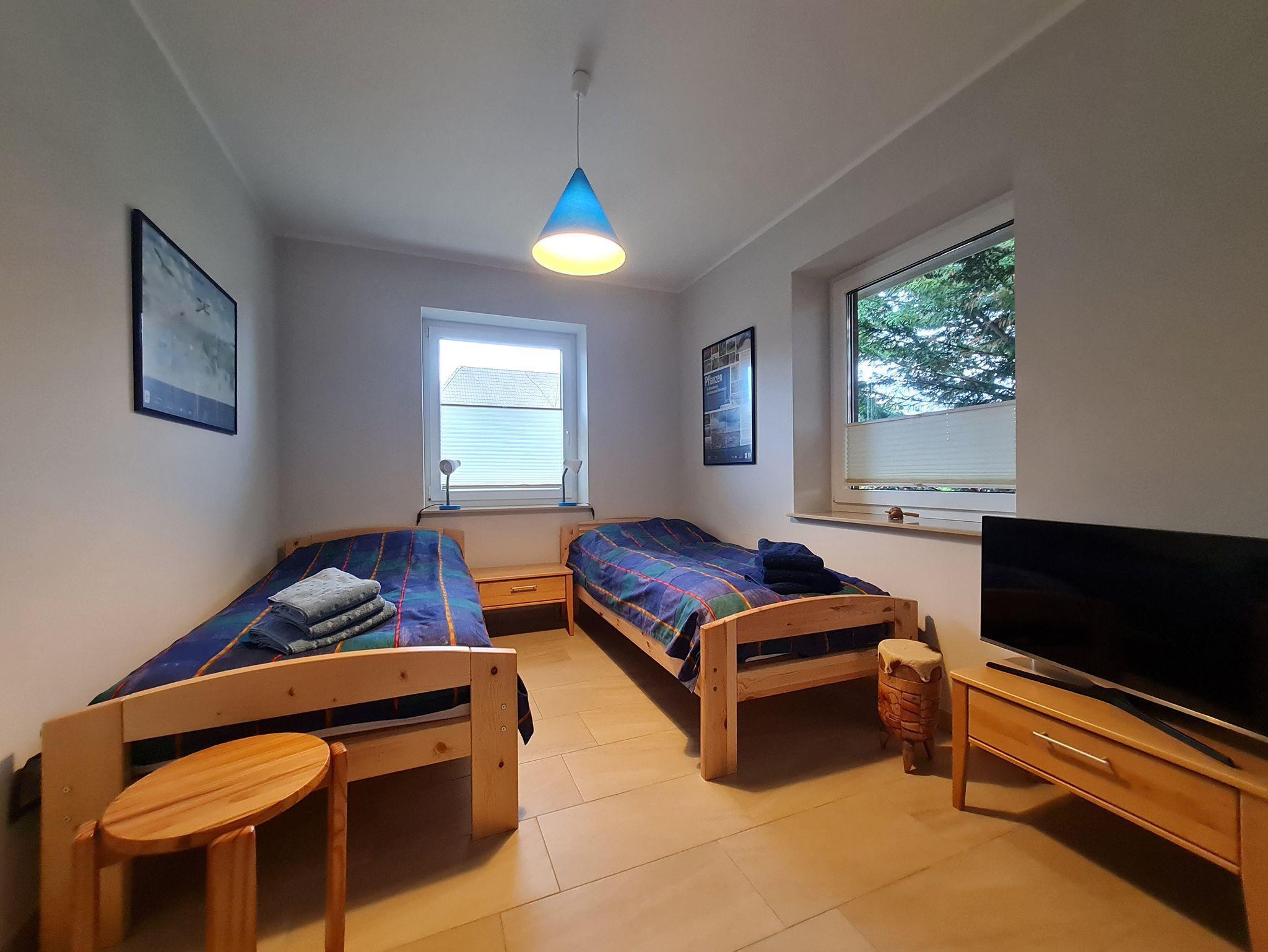 Zweites Schlafzimmer mit 2 Einzelbetten und einem zusätzlichen TV-Gerät.