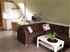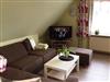 Der Wohnbereich verfügt über eine Sofaecke und einen Flat-TV mit DVD-Player.