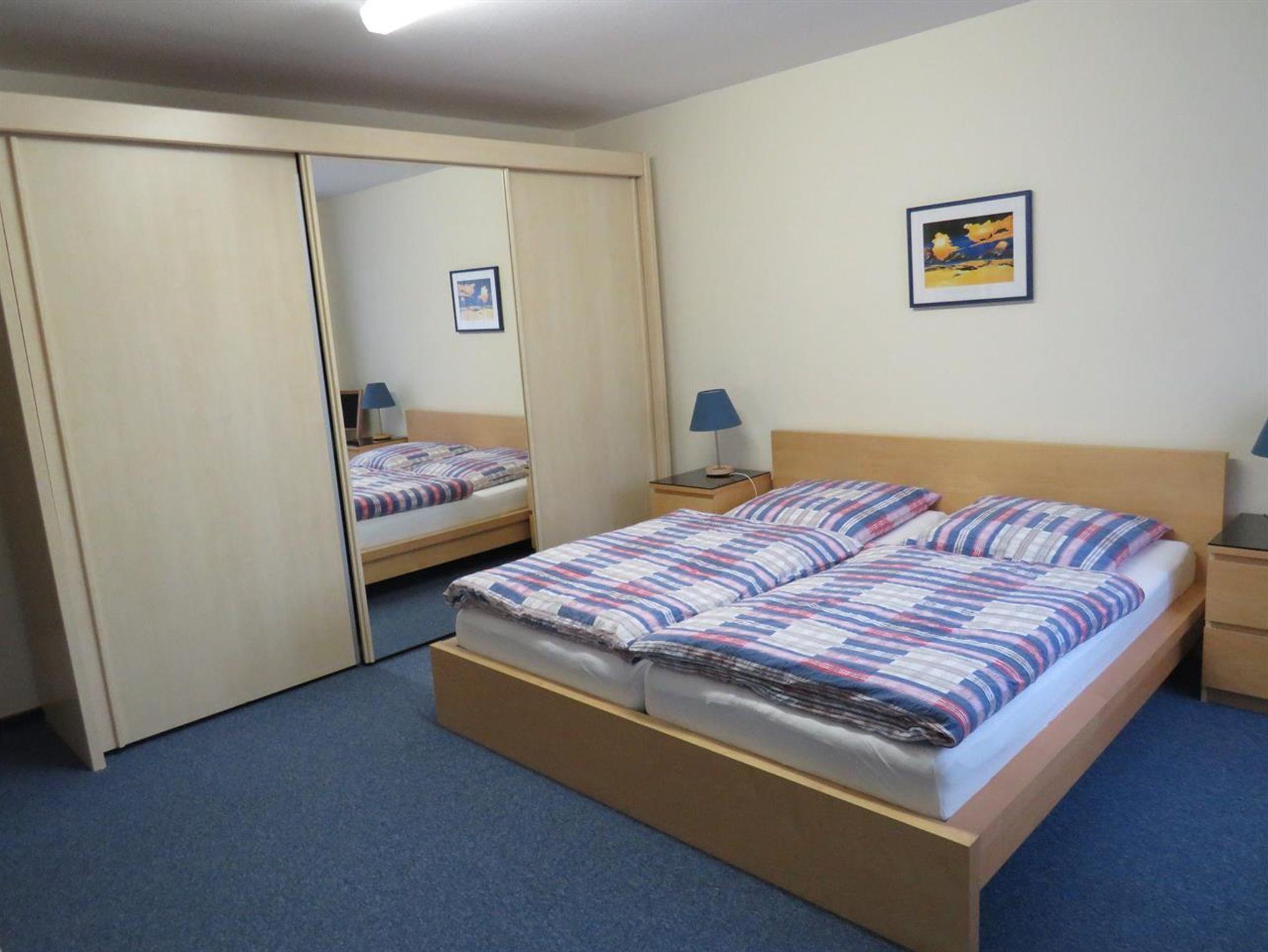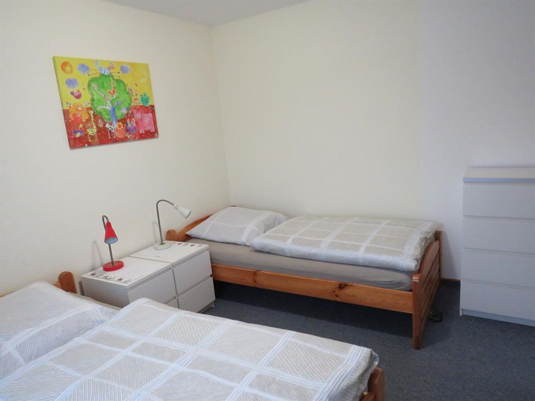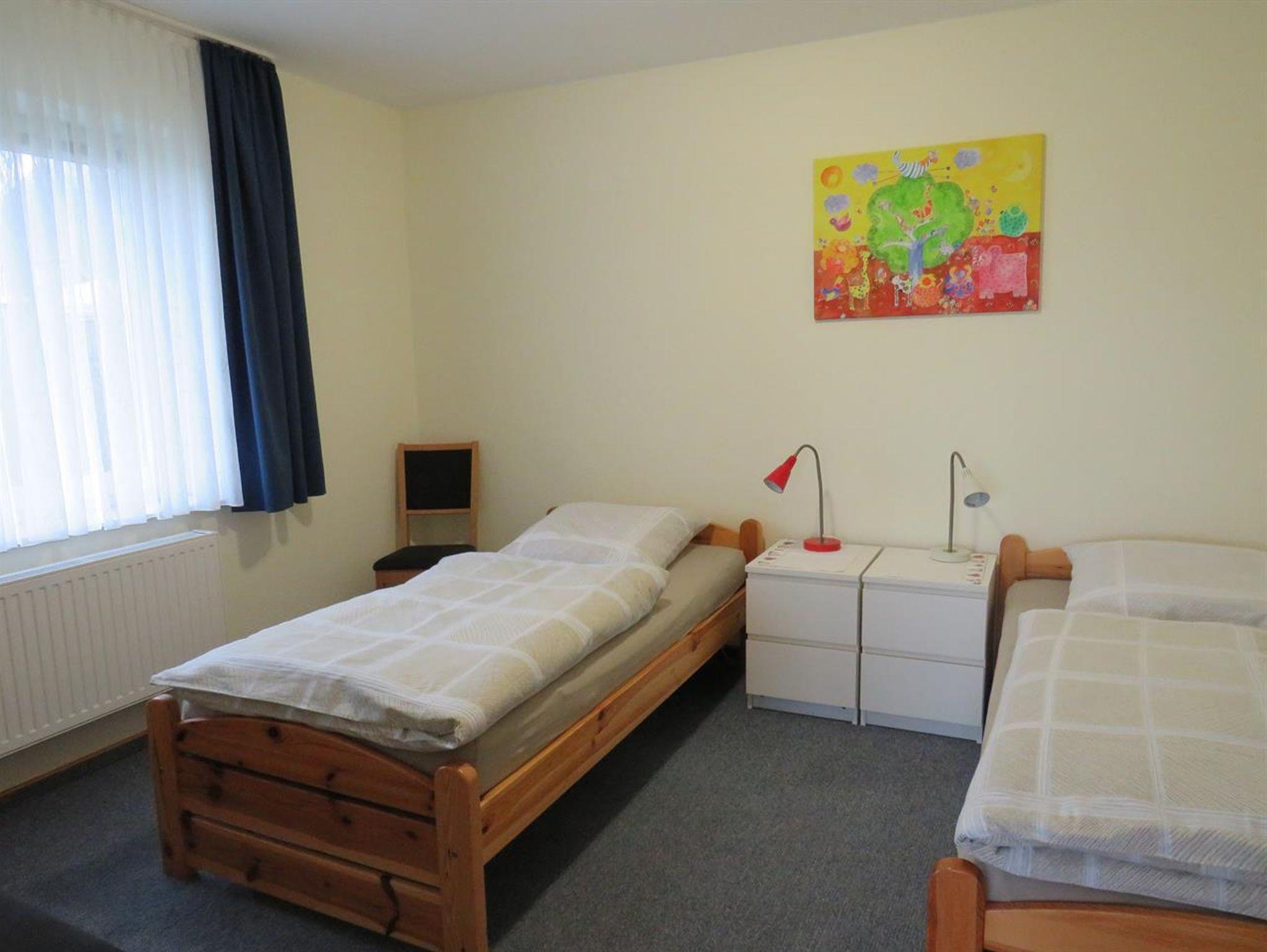 1 Kinderzimmer mit 2 Einzelbetten. 1 Kinderbett kann dazu aufgestellt werden, oder anstelle von einem Einzelbett. Im großen Elternschlafzimmer passt das Kinderbett auch sehr gut. Küche mit Küchenzeile und Essecke, Geschirrspüler. Komplett eingerichtet.