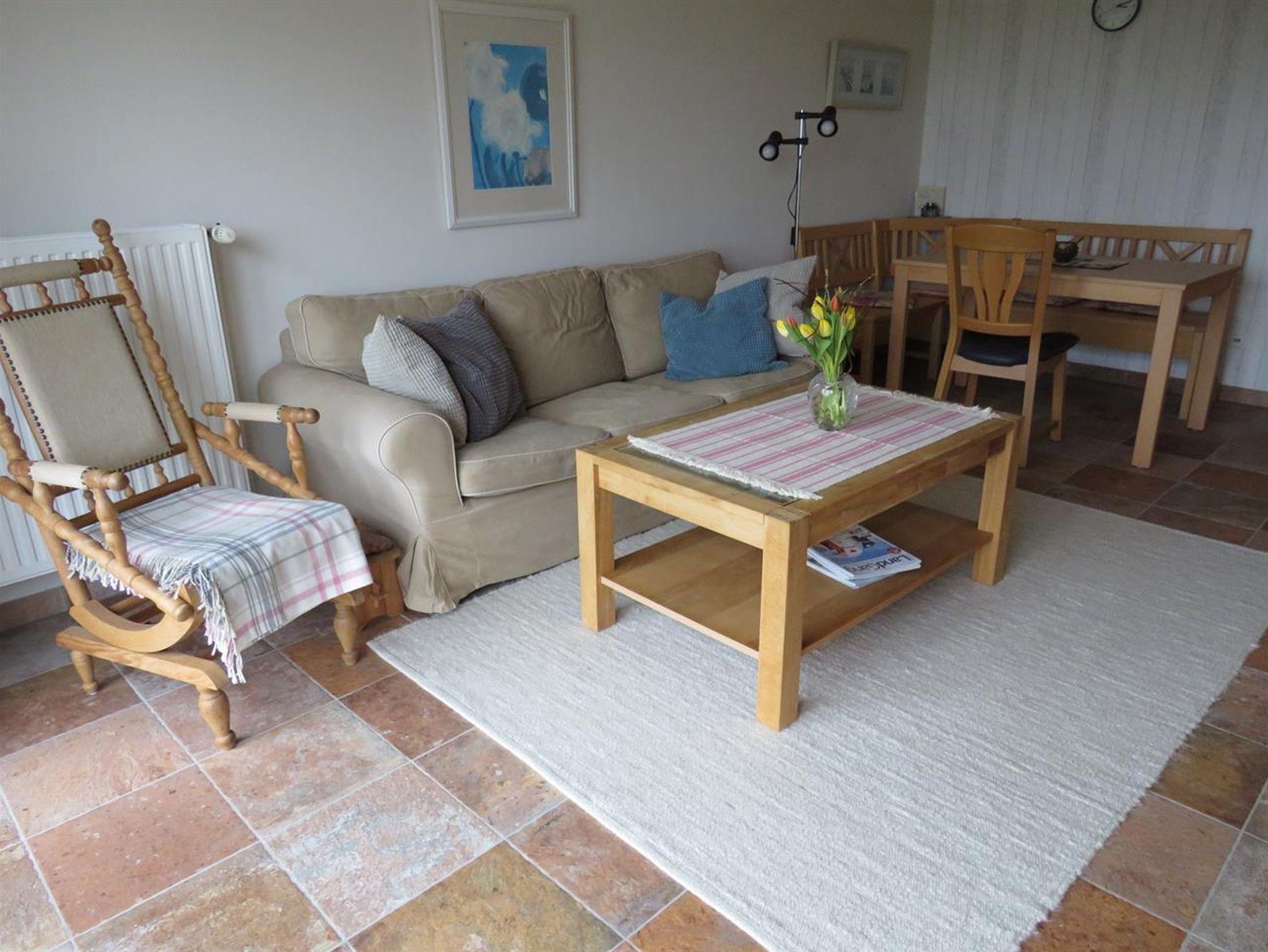 Sitz- und Essecke, Sat-TV und DVD-Player. 1 Schlafzimmer mit Doppelbett, großem Kleiderschrank und Frisiertisch,