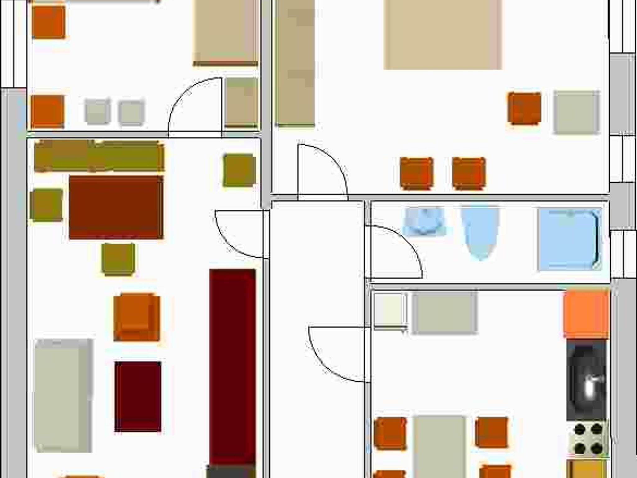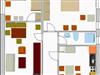 72 qm Wohnfläche, verteilt auf 1 Wohnzimmer mit Terrasse nach Süden,zusätzlich eine Südterrasse im Schatten von Bäumen.