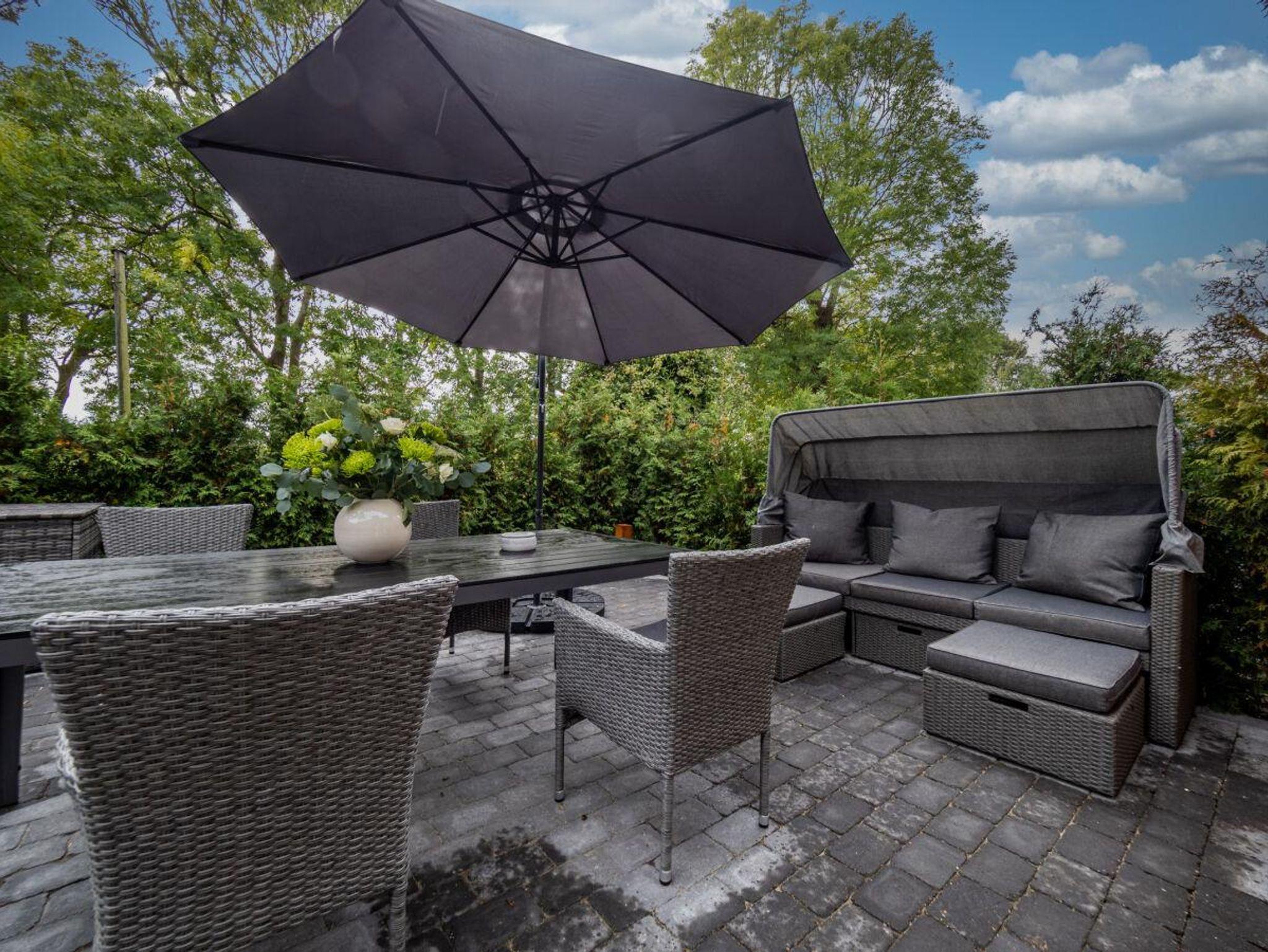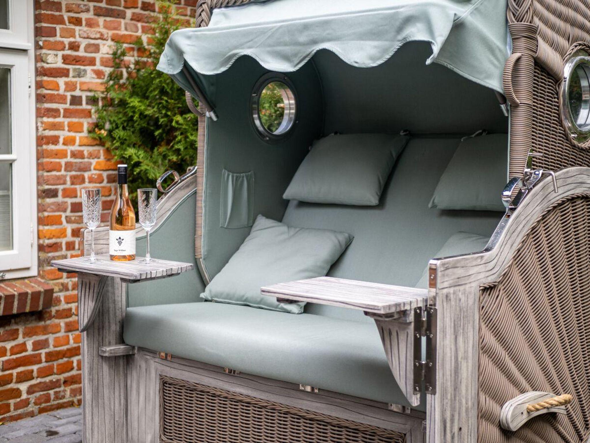 Außenbereich – Parkplatz – Terrasse mit Lounge Möbeln – Strandkorb