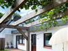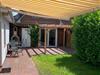 Terrasse mit Pergola und kleiner Rasenfläche,