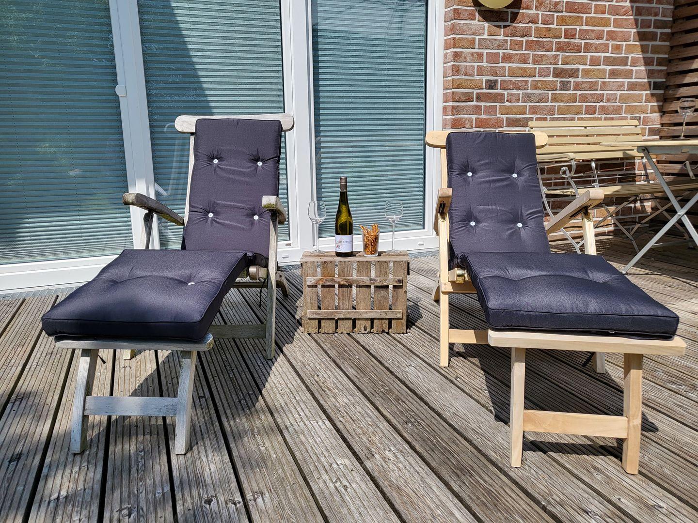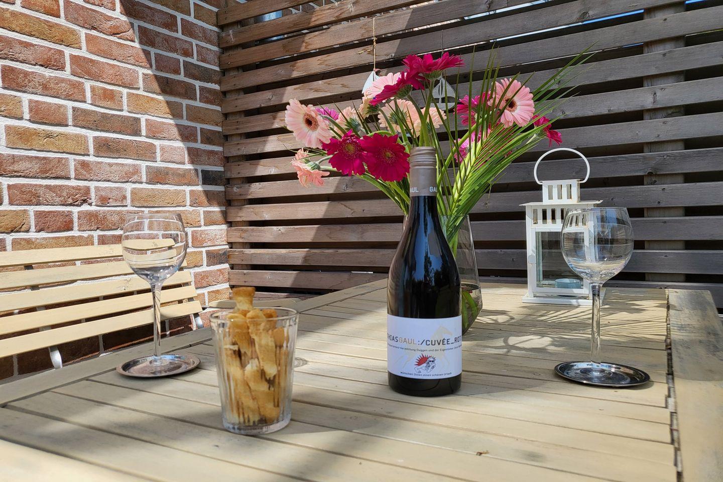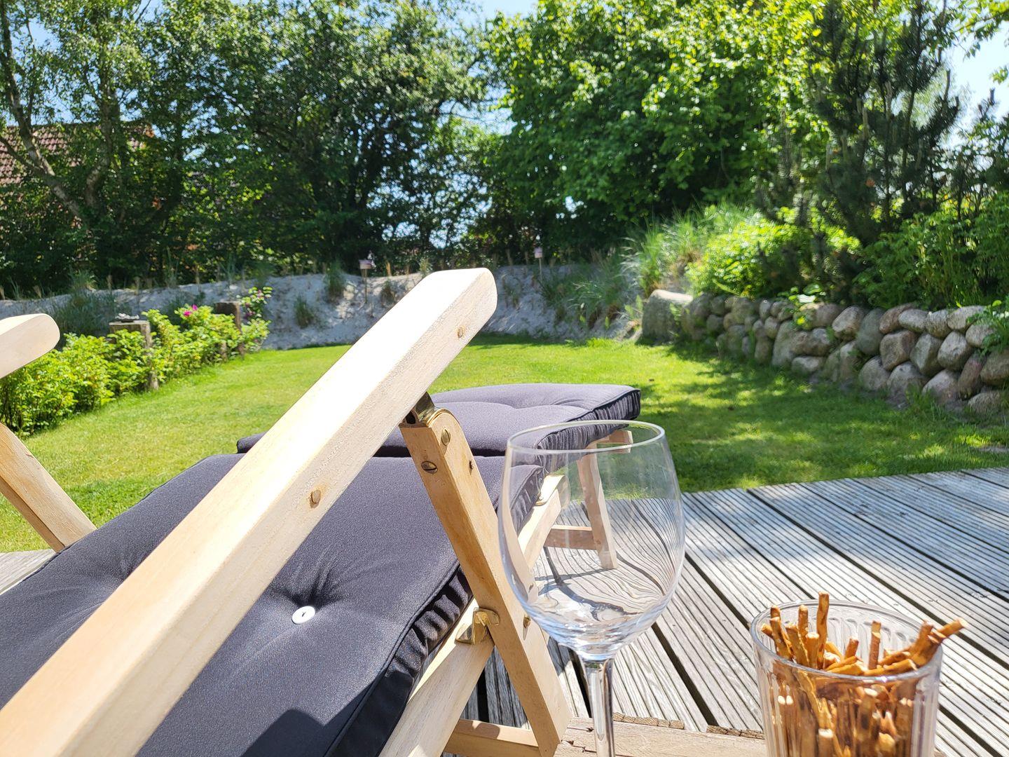 Der Garten verfügt über einen Außenwasserhahn, z.B. zum Abspülen von Surfkleidung, Kitebrettern etc.