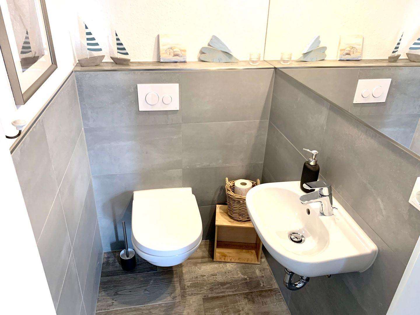 Ein Gäste-WC und der Hauswirtschaftsraum mit Waschmaschine und Bügelzubehör befindet sich ebenfalls im Erdgeschoss.