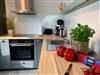 Zur Ausstattung gehören unter anderem ein großes Cerankochfeld mit Backofen sowie ein großer Kühlschrank mit Gefrierfach. Kaffeemaschine und Geschirrspüler stehen ebenfalls zur Verfügung.