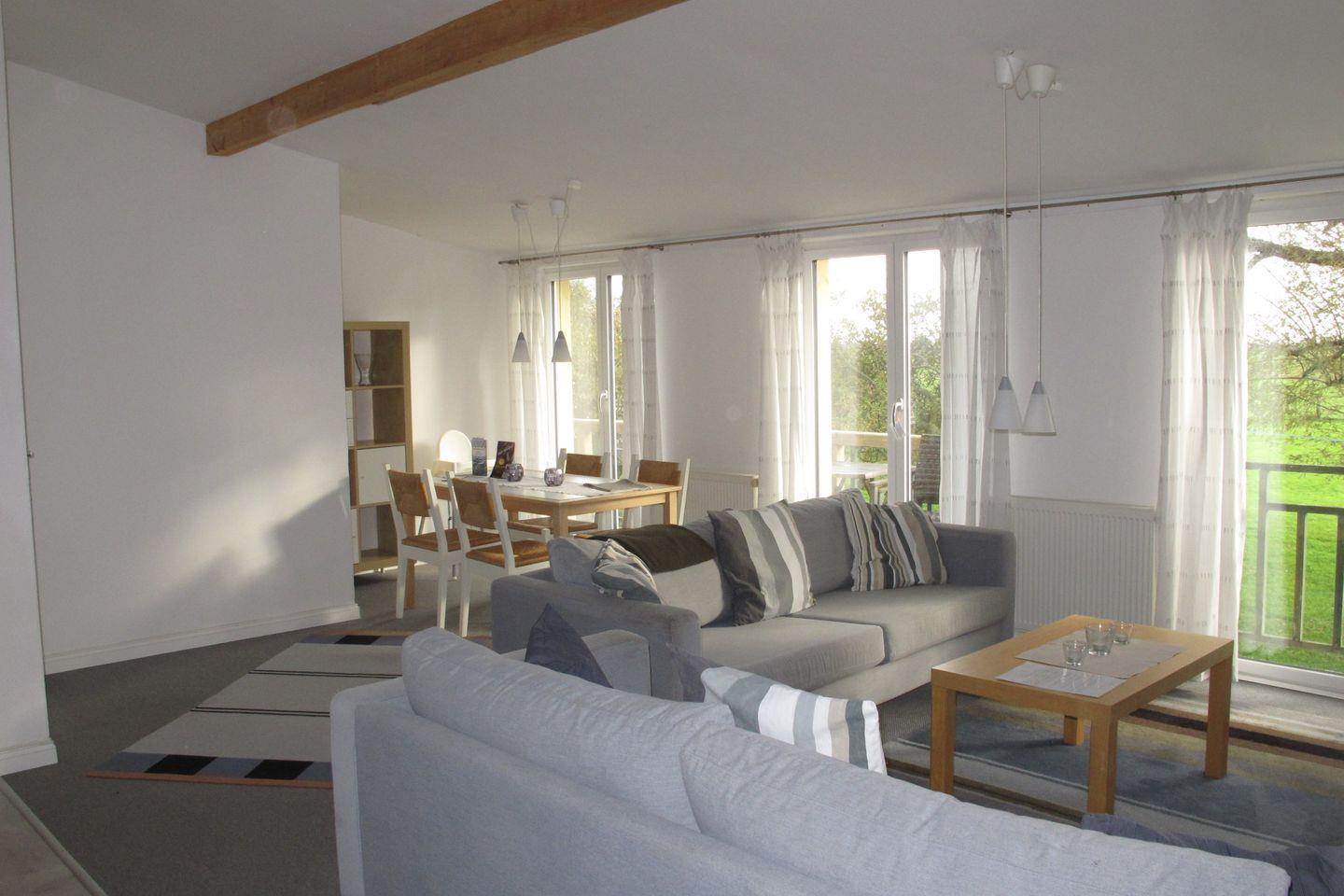 Die ruhigen Linien der Landschaft und der weite Horizont finden sich wieder in der klaren Konzeption der Wohnungen. Funktionale Grundrisse, großzügige, lichtdurchflutete Räume mit Doppelflügeltüren zu Terrasse oder Balkon und klare nordische Farben und Formen sorgen für eine behagliche Atmosphäre.