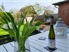Über den angrenzenden Hauswirtschaftsraum, in dem Sie neben Waschmaschine und Trockner auch ein Bügelbrett und Bügeleisen finden, gelangen Sie über eine Außentür in den Wellness-Anbau mit traumhafter Dampfsauna und Ruhebereich sowie einer weiteren Dusche und WC. Wellnesserlebnis unter freiem Himmel. Dampf-Sauna kann gegen eine geringe Gebühr wochenweise dazu gebucht werden.