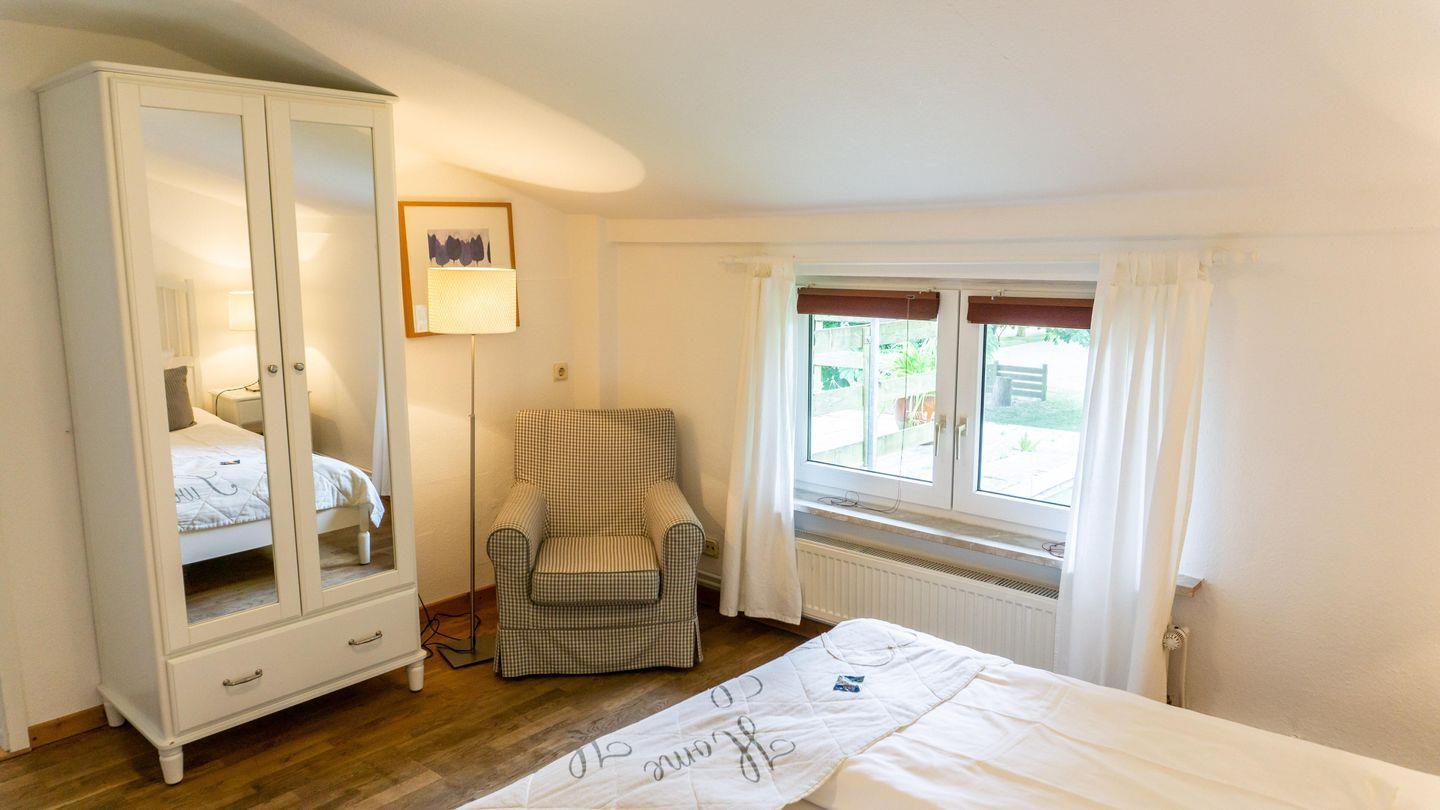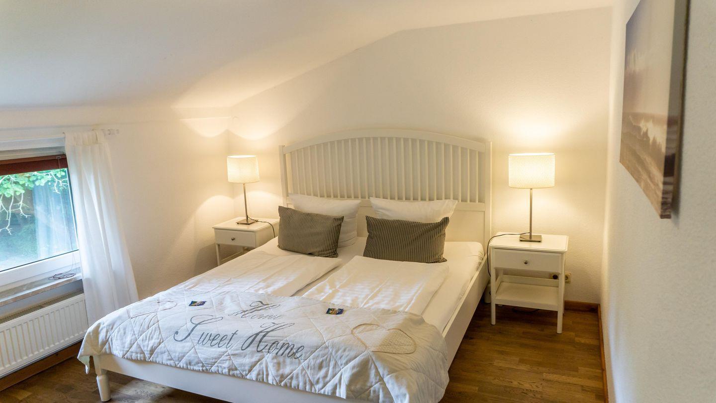Diese moderne Ferienwohnung bietet Platz für bis zu vier Gäste in zwei Schlafzimmern und überzeugt mit einer großzügigen Wohnfläche von 65 m². Genießen Sie die offene Küche zum Wohnzimmer, die möblierte Balkonterrasse mit Blick in die Natur sowie Annehmlichkeiten wie WLAN, einen Fernseher und ein gemütliches Wohnzimmer mit Sofaecke. Haustiere sind willkommen. Das große Grundstück bietet für Kinder eine Rutsche, Spielscheune sowie eine Schaukel.