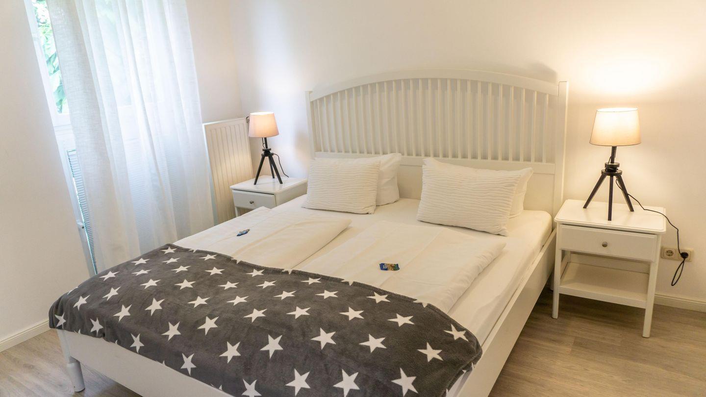 Die Unterkunft befindet sich im ersten Stock und verfügt über zwei geschmackvoll eingerichtete Schlafzimmer, die für erholsame Nächte sorgen. Der helle und einladende Wohnbereich ist offen gestaltet und harmonisch mit der Küche verbunden, wodurch eine angenehme Atmosphäre für gemeinsame Stunden entsteht. Die Ausstattung der Küche lässt keine Wünsche offen: von einem Herd mit Ceranfeld über einen Backofen, eine Spülmaschine bis hin zu einer Kaffeemaschine und einem Toaster – alles steht bereit, um kulinarische Köstlichkeiten zuzubereiten. Ein Hochtisch für angenehme Mahlzeiten sowie eine gemütliche Sofaecke tragen zu einem angenehmen Wohngefühl bei.