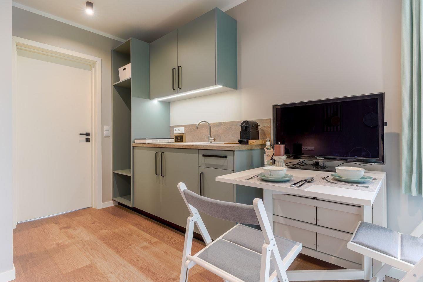 Serviced Apartments sind, als abgeschlossene, eigenständige Wohneinheiten vermietete Wohngebäude im Sinne des § 3 Abs. 1 Nr. 33 GEG. Dies umfasst ausdrücklich auch voll ausgestattete Apartments für Kurz-, Mittel- und Langzeitaufenthalte. Genau das erwartet Sie hier: funktional, stilvoll und komplett eingerichtet – für Workation- und Freizeitaufenthalte gleichermaßen.