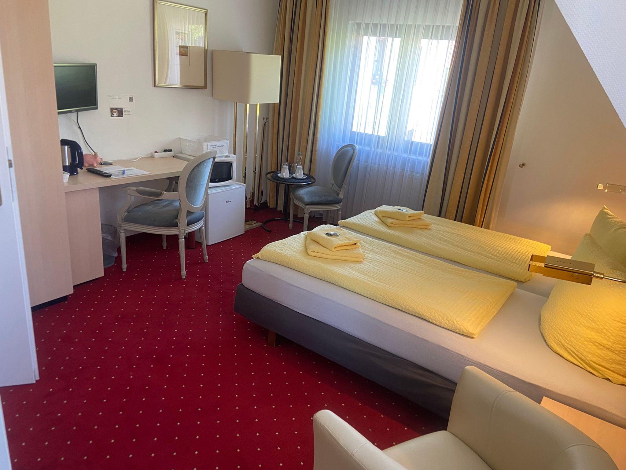 Willkommen in unserem Gästehaus! Das Doppelzimmer bietet ein behagliches Schlafzimmer mit einem komfortablen Doppelbett. Im Badezimmer finden Sie WC und Dusche für Ihre Erfrischung. Genießen Sie Annehmlichkeiten wie Fernseher, Kaffee- und Teekocher, Kühlschrank, Schreibtisch und Sitzgelegenheit. WLAN steht Ihnen ebenfalls zur Verfügung. Hier erwartet Sie ein angenehmer Aufenthalt!