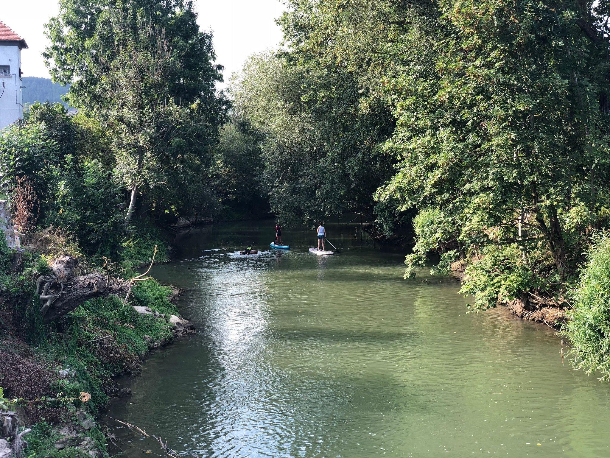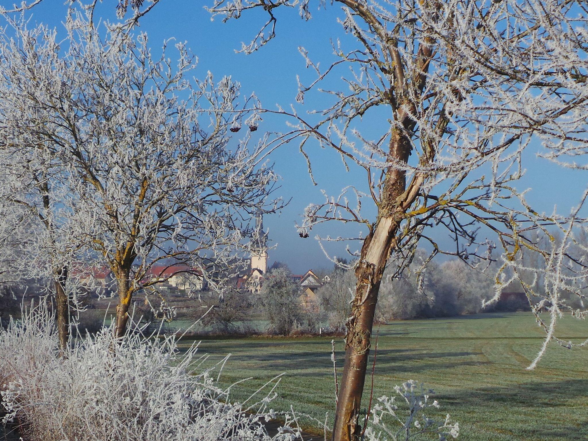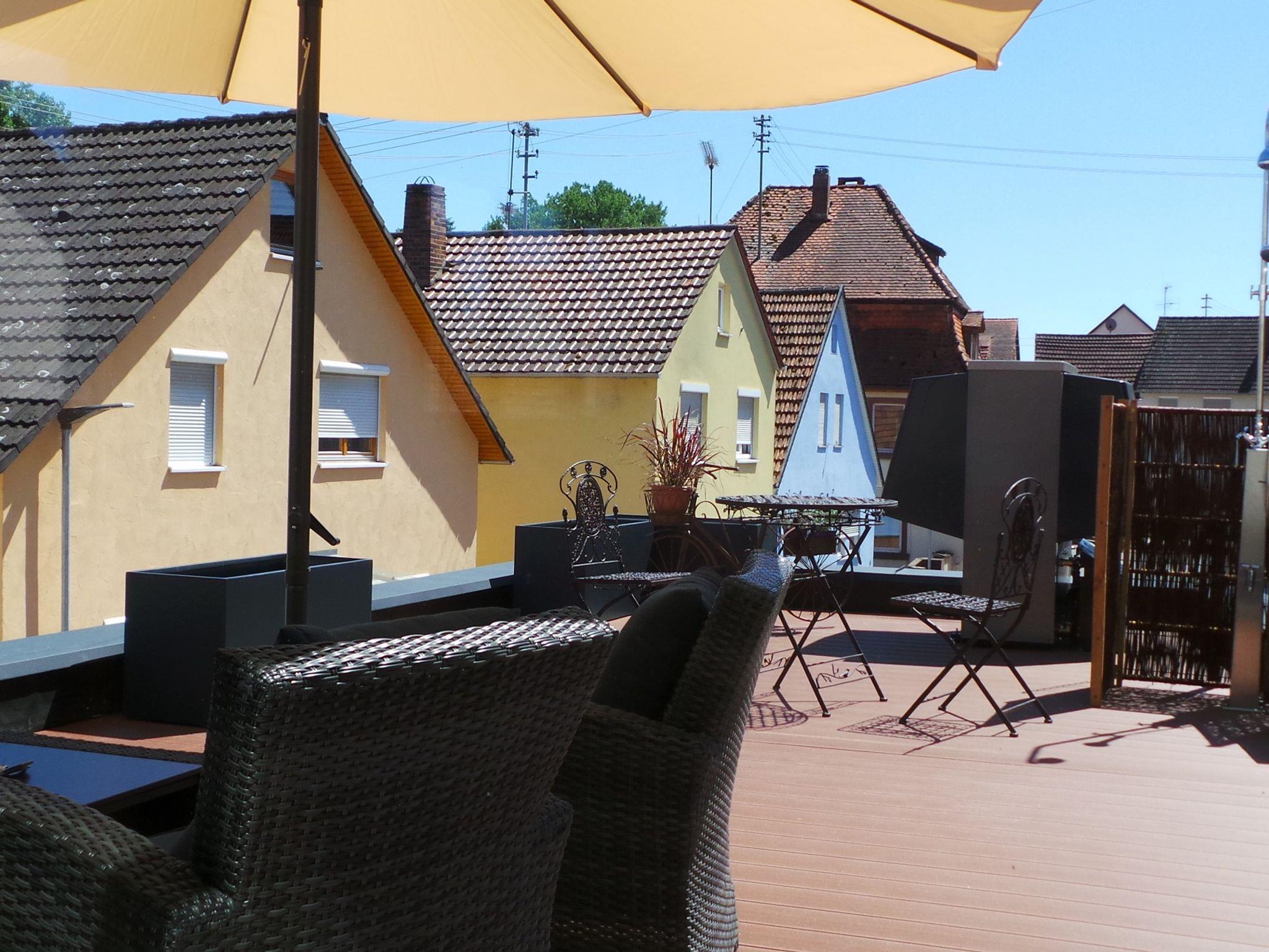 Modernes Massivholzhaus, mitten im Teilort Hochhausen von Tauberbischofsheim, direkt am Fahrradweg und mit Blick auf die Tauberwiesen.
