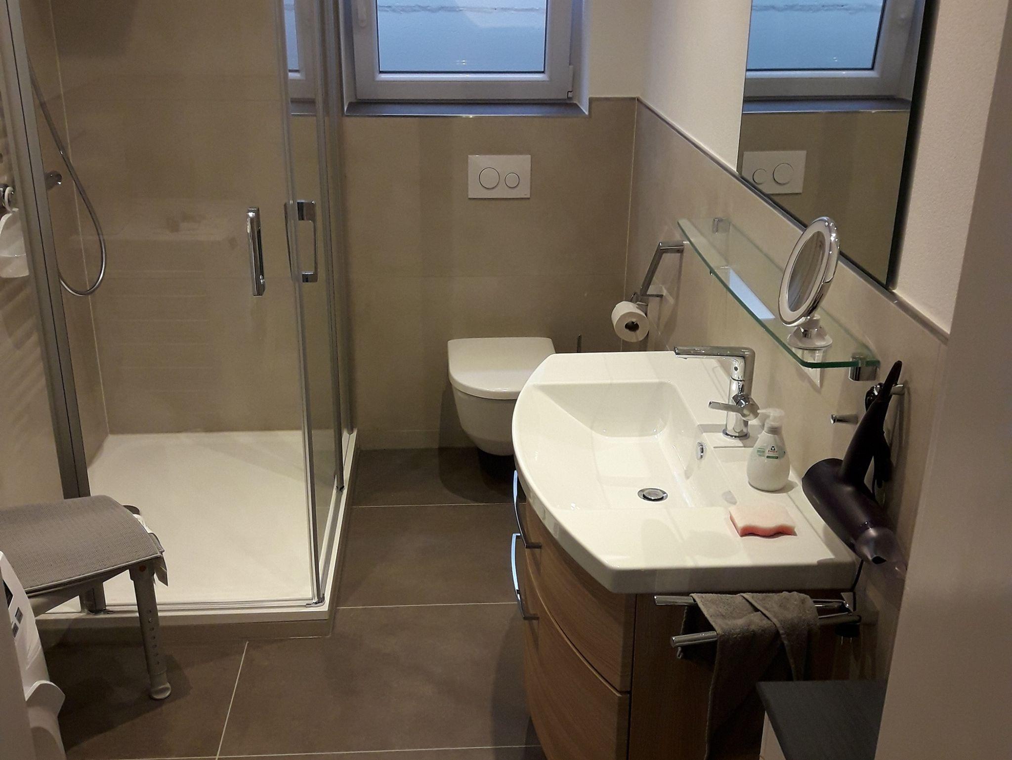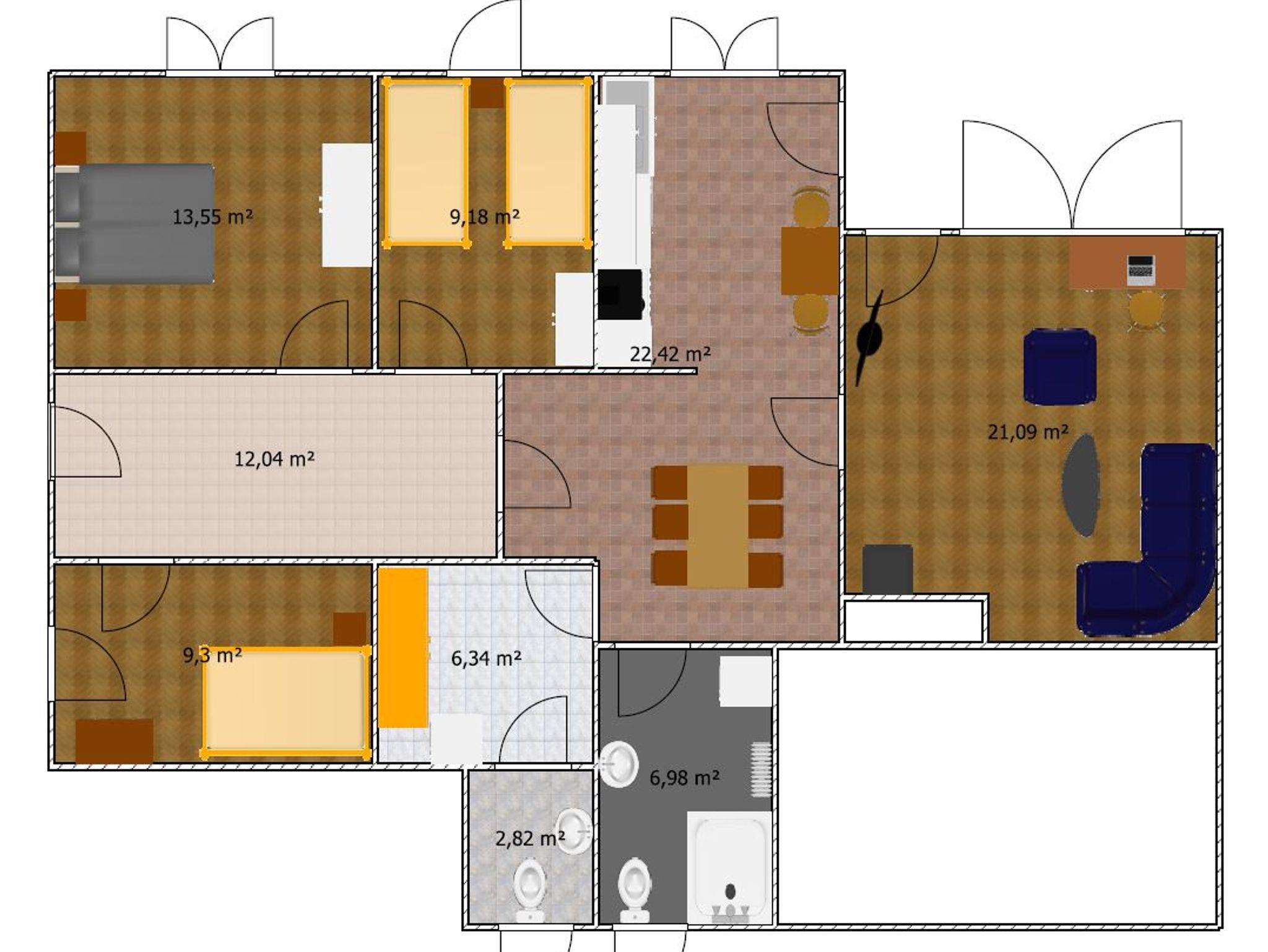 Die Wohnung verfügt über drei Schlafzimmer mit 1x großem Doppelbett, 1x kleinen Doppeltbett und 2x Einzelbetten. Weiterhin bieten wir ein großes Bad mit Dusche und einem Gästeklo, Waschmaschine und Trockner.