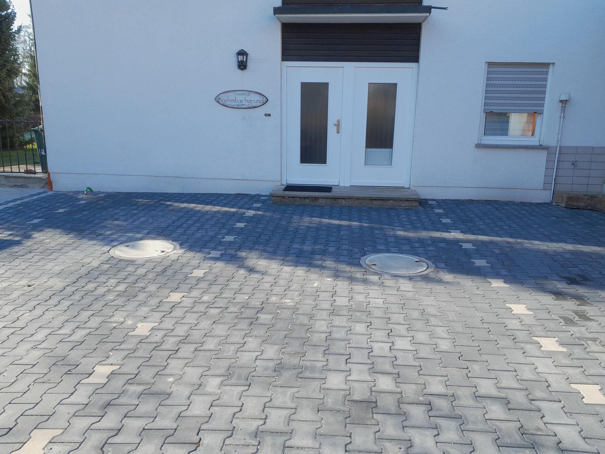 Ein Separater Eingang mit ausreichend Parkfläche direkt vor der Tür ist vorhanden, genauso wie eine abschließbare Fahrradgarage.