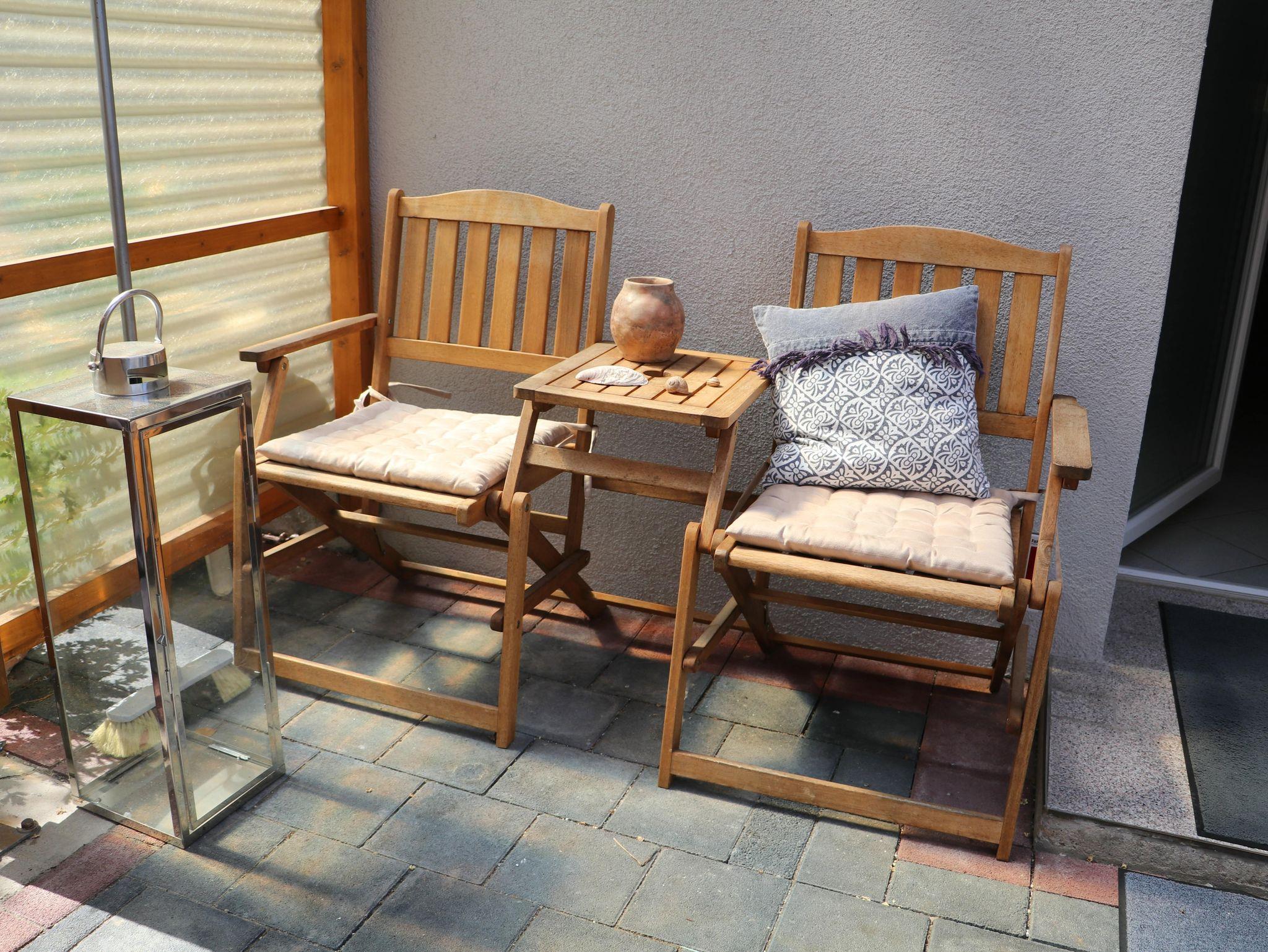 Die Terrasse ist umzäunt und somit der ideale Auslauf für mitreisende Hunde.