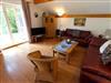Im Wohnraum finden Sie eine gemütliche Couchecke mit Sat- TV und Kamin, darin integriert befindet sich der Essbereich mit Tisch und Stühlen.