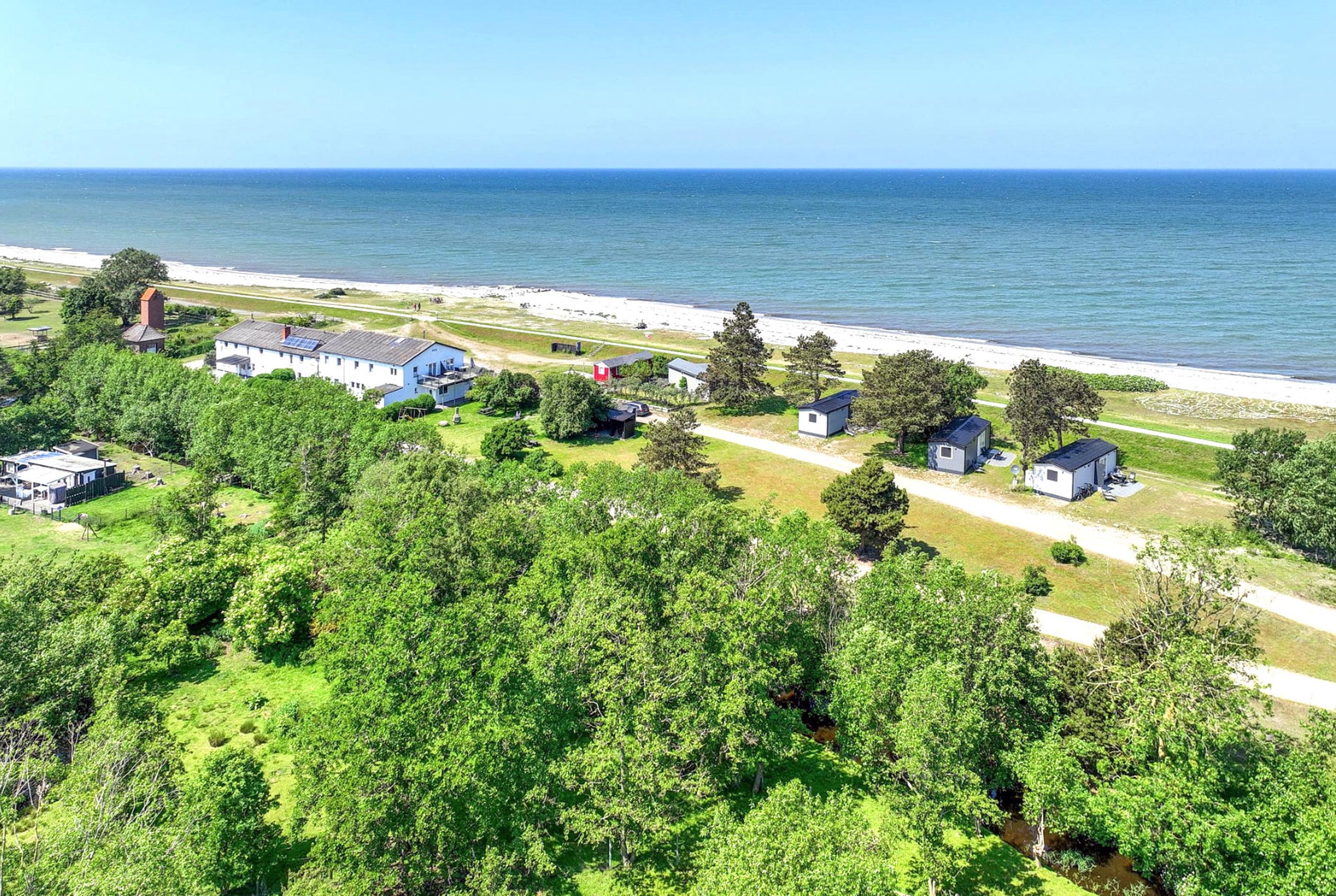 Im malerischen Garten des Gutes Teichhof erwartet Sie das Tiny House James Cook für Ihren entspannten Urlaub am Meer. Dieses charmante Strandhaus bietet Platz für maximal 2 Erwachsene und verspricht einen unvergleichlichen Meerblick. Genießen Sie die Behaglichkeit eines Doppelbettes im Schlafzimmer sowie des eigenen Badezimmers mit Dusche. Die Wohnküche lädt zu gemeinsamen Kocherlebnissen ein und ist mit Annehmlichkeiten wie einer Filterkaffeemaschine, Mikrowelle und Spülmaschine ausgestattet. An sonnigen Tagen lädt Ihre private 15 m2 große Terrasse im Garten zum Entspannen und Genießen ein. Im Wohnzimmer mit TV, DVD und HiFi-Anlage finden Sie erholsame Stunden der Unterhaltung. Der Strand liegt direkt vor, fast schon unter Ihrer Tür und verspricht Momente der Ruhe und Erholung. Überdachte Fahrradabstellmöglichkeiten und Parkplätze für Ihr Auto stehen auf dem Gelände des Gutshofs zur Verfügung. Die einzigartige Lage des Teichhofs ermöglicht es Ihnen, die idyllische Natur zu erkunden, während Sie zugleich von der Nähe zu zwei Restaurants und der nächsten Stadt profitieren, die nur 5 Kilometer entfernt liegt und eine Vielzahl von Einkaufs- und Restaurantmöglichkeiten bietet. Als familien- und radfreundliche Unterkunft heißen wir auch Ihren Hund herzlich willkommen. Zum Be- und Entladen können Sie gerne direkt am Strandhaus halten. Das Check-in erfolgt bequem eigenständig. Auf dem Gelände des Teichhofes erwartet Sie zudem ein Streichel-Zoo mit Schafen und eine Wiese mit Ponys. Das Tiny House James Cook bietet somit die ideale Kombination aus Ruhe und Erholung sowie der Nähe zu verschiedenen Aktivitäten und Annehmlichkeiten für einen unvergesslichen Urlaub.