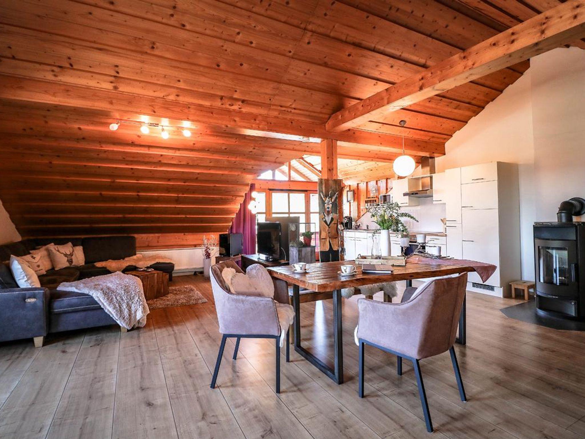 Loft Wohnung im Chalet Stil im 2. Stock auf ca 90 qm mit Schlafzimmer, Bad und offener Wohnbereich mit Küche - Essen - Wohnen - SPA mit Infrarot-Kabine.