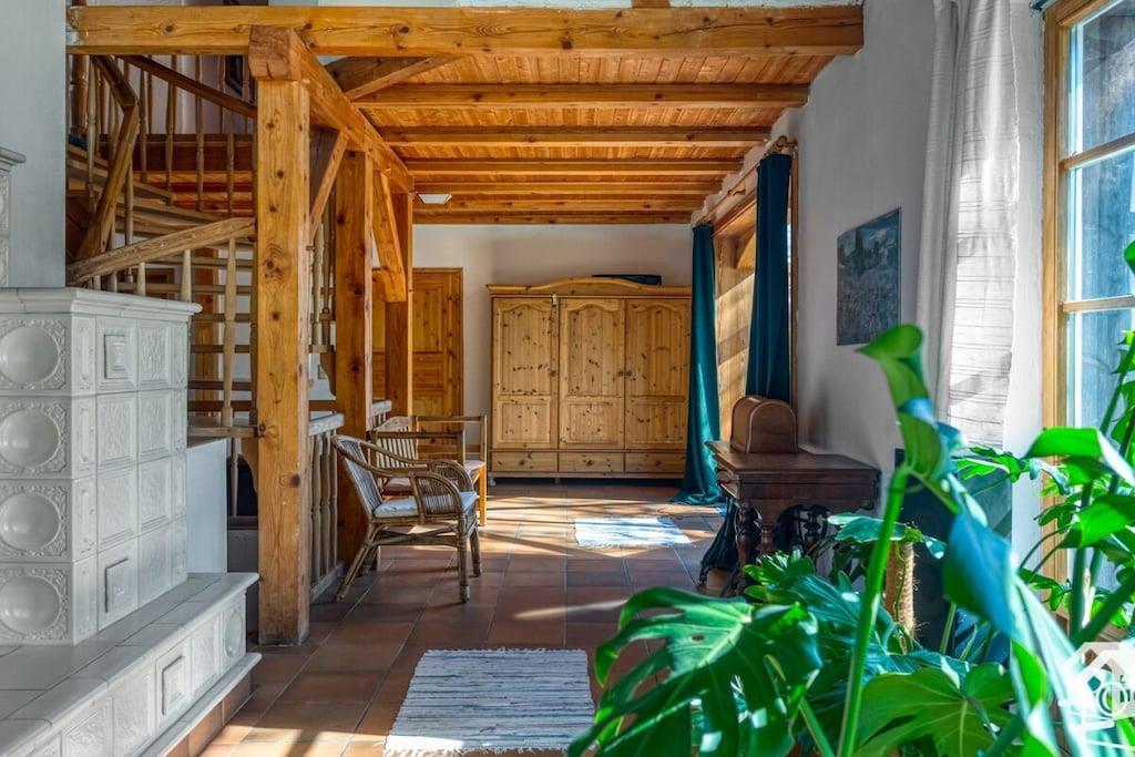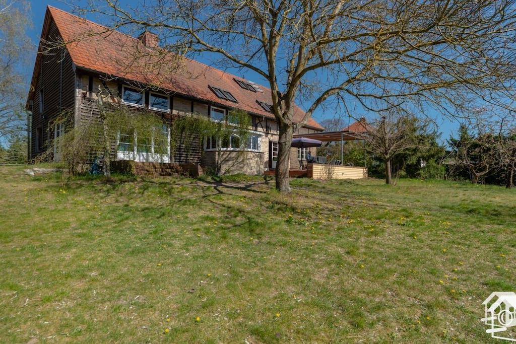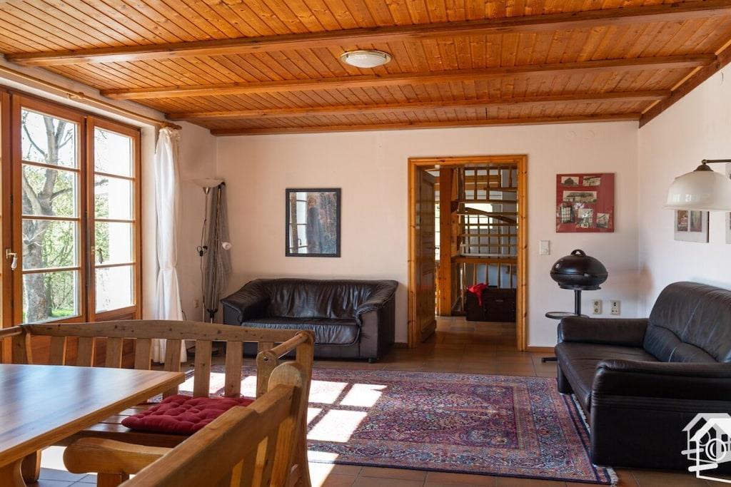 Aus einem alten Fachwerkhaus wurde ein Feriendomizil, in dem Licht und Holz den Ton angeben. Von der großen Terrasse hat man einen einmaligen Blick auf einen zugewachsenen See und auf unverbaute Landschaft. Das Ferienhaus liegt am Ende der Dorfstraße. Es gibt nur einen direkten Nachbarn. Ideal ist das Ferienhaus für große Gruppen: befreundete Familien – Kinder haben 4000 qm Platz zum Spielen – Hochzeits -und Geburtstagsgesellschaften, Ehemaligentreffen und Arbeitssitzungen. Unser Ferienhaus ist nur 90 Minuten von der Stadtmitte Berlins entfernt! So lässt sich beides verbinden: Ländliche Ruhe und städtischer Trubel.